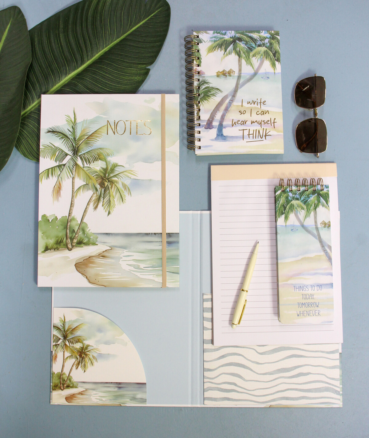 We’re quite excited about our A4 Padfolio in Coastal - it’s a little different and honestly, it just looks fantastic on a desk. This one’s a lot more than just a notepad - it’s actually got an easy-to-replace 40-page lined 80gsm notepad, and measures up at 22x30cm when folded. That gives customers plenty of space for their notes without taking over the entire table or counter. The hard cover is beautiful and the beach design is so calm, it just makes people want to pick it up for a quick doodle or jot down ideas. It’s lightweight too, so there’s no worrying about customers thinking it’ll be heavy to carry around. With quality paper, this will really appeal to students who need something for their classes but still want to look cool. But also the minimalist design and soothing blue shades make it perfect for offices, home offices, living room shelves as decor or other shops that want a statement piece to draw in more customers. And our A4 Padfolio is super affordable too!