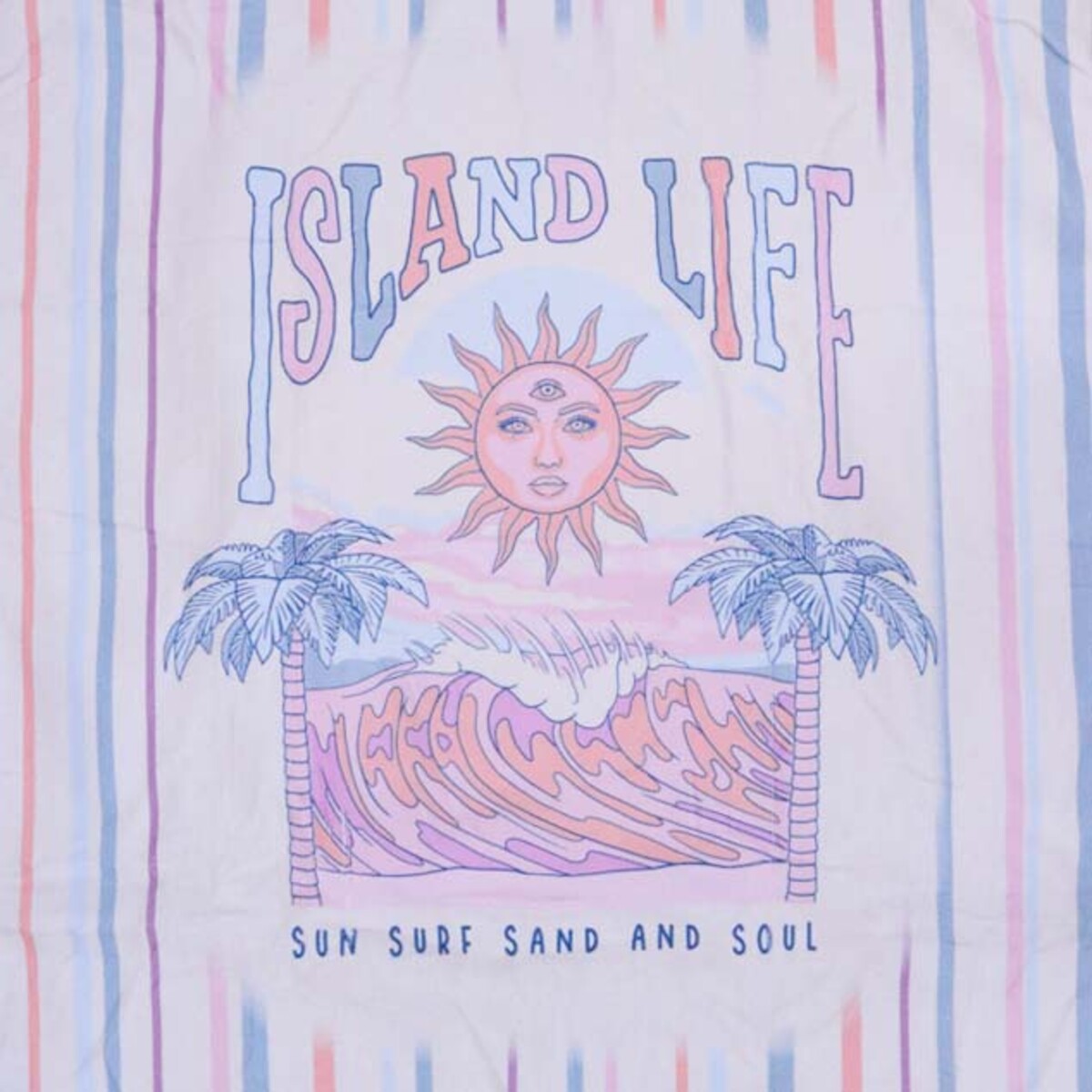 We're always excited about versatile, easy gift ideas and that's what makes our Adult Towel Poncho Island such a hit for homewares and gift stores. This one ticks all the boxes for retailers looking to stock something practical and fun. The simple pastel stripe design works with practically any aesthetic - right from contemporary coastal to a more whimsical boho vibe. And it's not just a looker - this towel poncho is pure microfibre magic! It's plush and feels like wearing a cloud after a swim, spa, or even just lounging at home post-shower. Not everybody wants the faff of tight towels or fiddly robes - there's something fuss-free about pulling on a hooded poncho, especially when it's got room to spare and an oversized front pocket. It even comes with a matching drawstring bag that keeps it tucked away neatly in a gym bag or suitcase. Machine washable too (just use cold water on a gentle cycle).