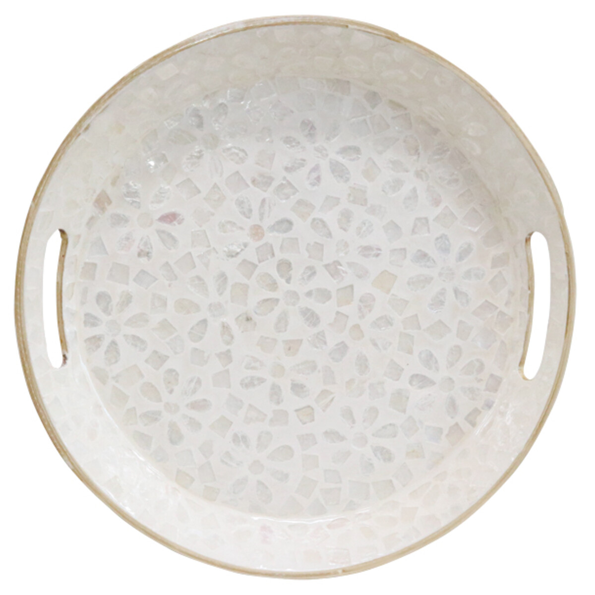 We are always on the lookout for stunning centrepieces and practical serving trays that will work both ways, and this Bamboo Tray Capiz Shell hits all those marks. What’s so great about this piece is the classic circular shape - it’s got an organic, rustic, yet contemporary look that will suit a whole range of tastes and interiors. And it’s a sustainable bamboo base with a mother-of-pearl capiz shell inlay that brings a subtle shimmer. Now, this is where it gets interesting.