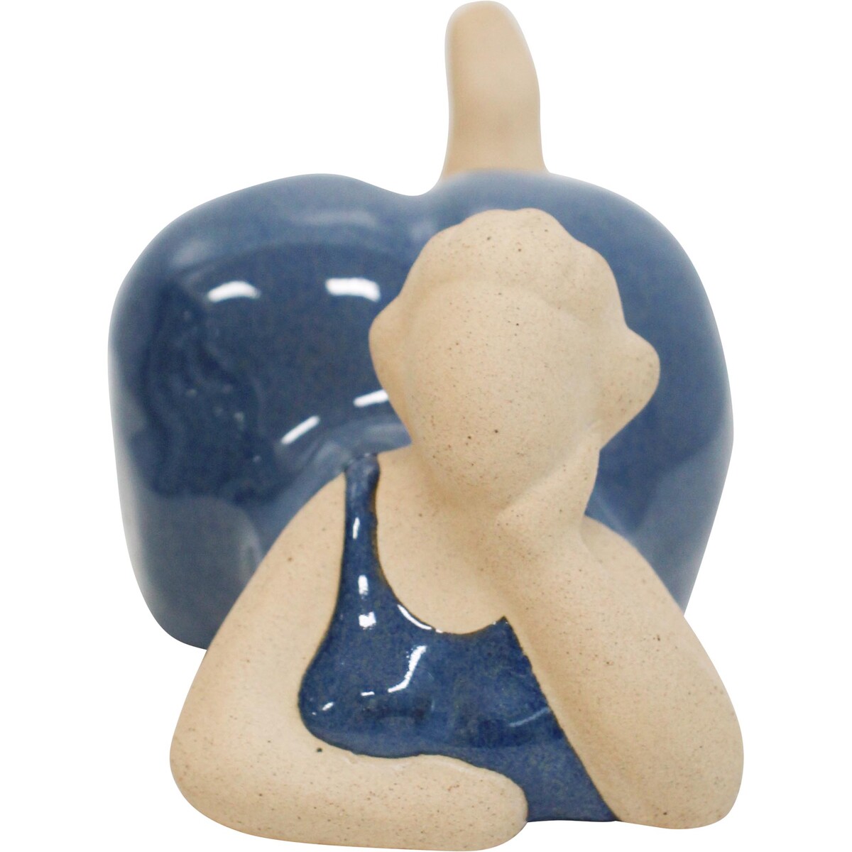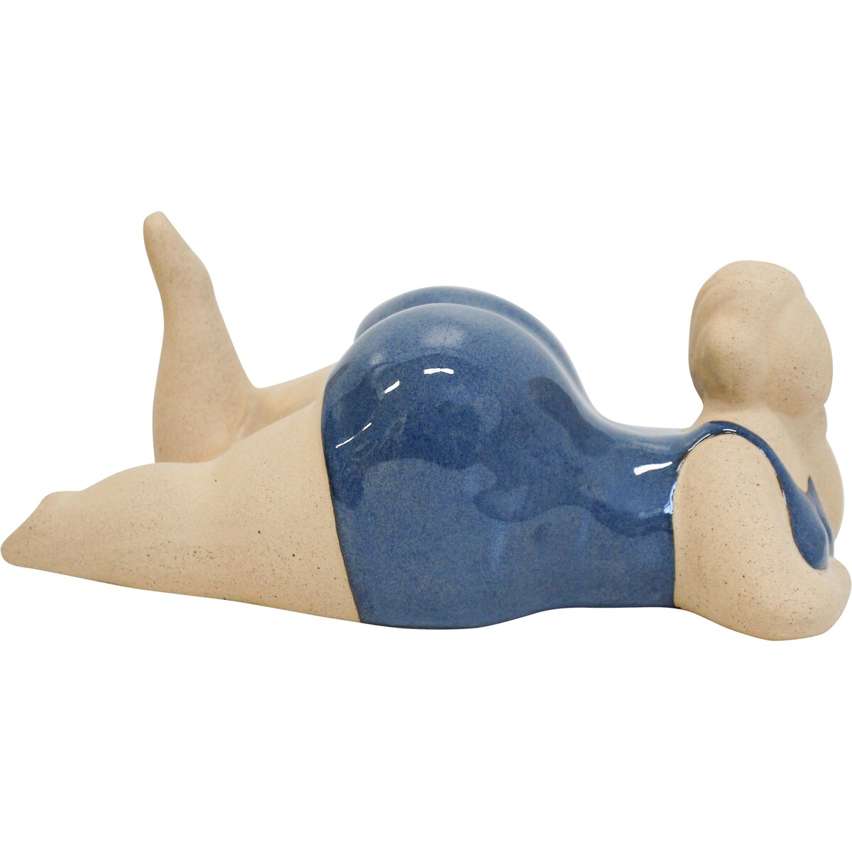 The piece measures 20.1x9.8x8.4cm and is beautifully handcrafted and finished from ceramic. We like how the textured body is left unglazed for contrast. The figure is wearing a vintage-inspired blue swimsuit that’s glazed to a lovely shine.