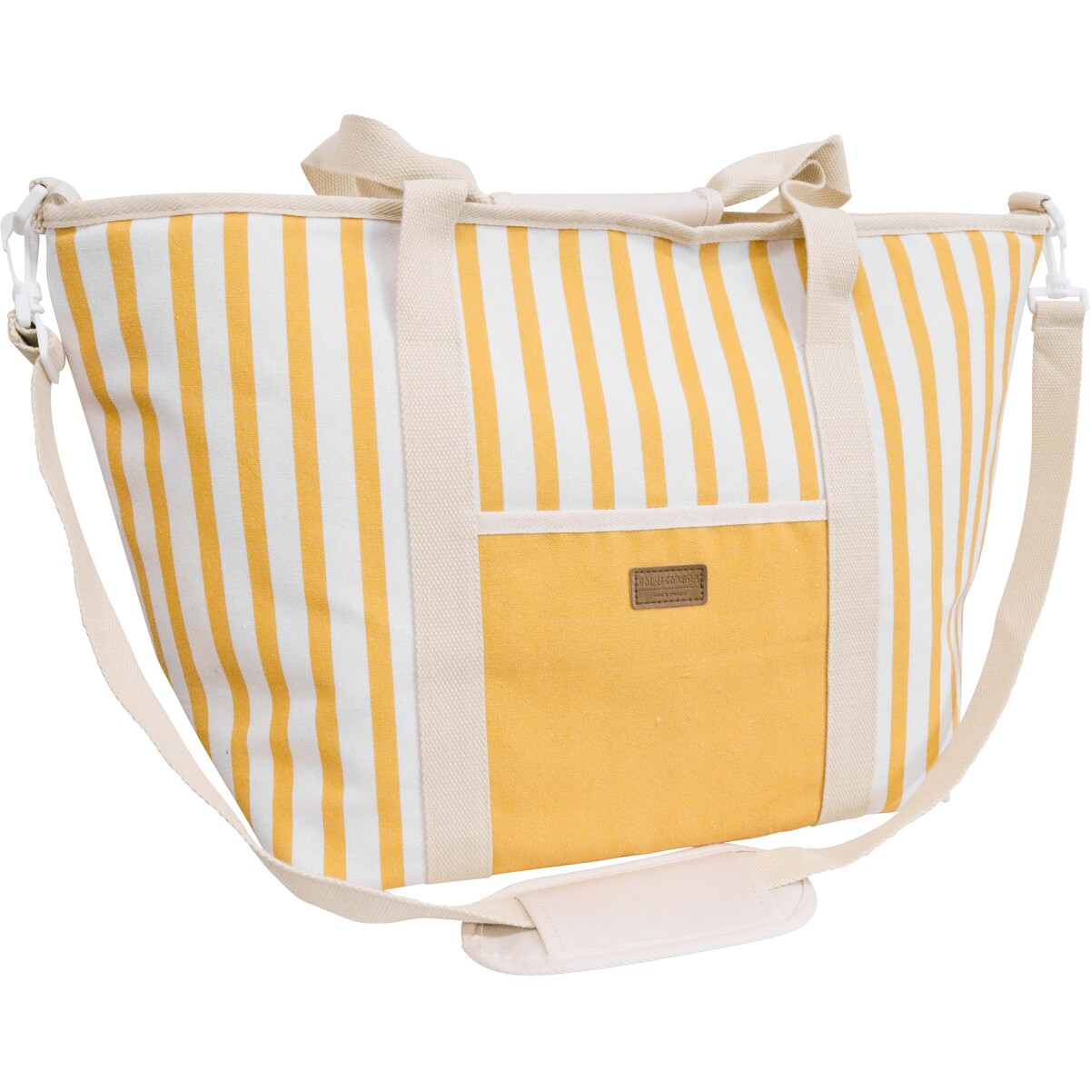 We're really excited about this Beach Cooler Canvas Bag Sun. The whole look is so light and cheery - it's a real reminder of the classic Aussie summer. And it’s such a good size. At 51x23x34cm - plus an easy-to-carry handle - it’s one of those bags customers can take with them anywhere. It’s never going to feel awkward or bulky, either. We just love the sunny yellow design, too. It’ll complement pretty much any summer decor, especially for those shops that are after something bright and fun. That beachy aesthetic is always going to be in style - we keep seeing it every year without fail. This one is lined with PEVA, which basically means if you’re carrying food in the bag, it’s all good. It’s durable and easy to clean, which customers will absolutely love. And for shops that want more sustainable products on their shelves, this one is made from high-quality canvas. All natural, all good for the environment too.