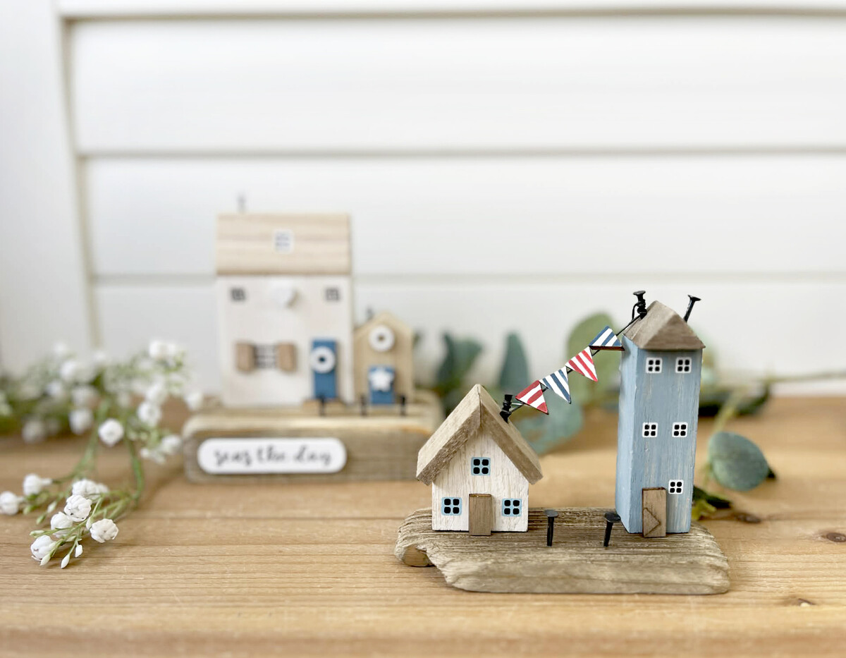 With two houses sitting side by side connected at their base and roof with bunting, you get this sense of character from the item which is brought out with those distinct brushstrokes (handmade) if you take a closer glance. The colours themselves aren’t loud or pastels so we’ve noticed that they blend in easily with more rustic interior styles - especially when placed between other wood trinkets, ceramics, glassware, etc.
