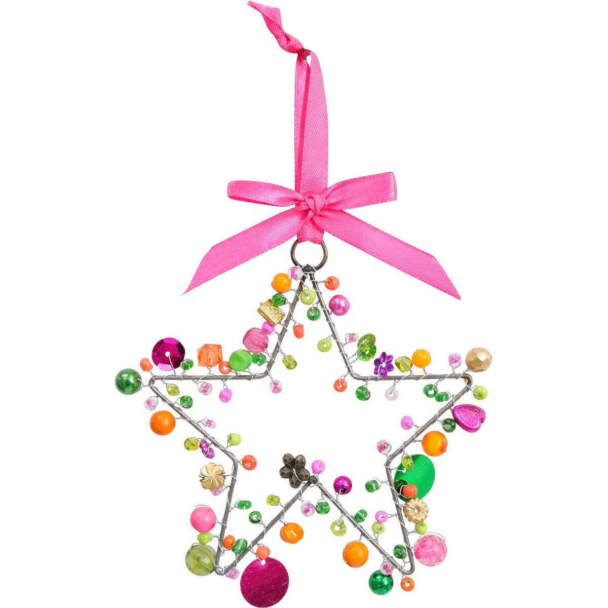 This has become our absolute favourite piece and it is not hard to see why. Beaded Star Fairytale features pretty metallic wirework framing a dazzling star shape. Handcrafted with attention and care, each piece comes with minute variations in size, shape, and material. To make this stand out further, each star comes loaded with an eclectic mix of handwoven beads that range from glass, pearls, plastic, to other items for a vibrant look. Each bead is chosen for its unique colour - think pinks, greens, oranges, purples - and intricate detail such as gems or cutwork.