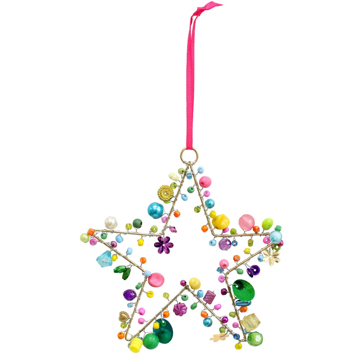 We can say with certainty that the Beaded Star Solei is one of the brightest, most cheerful pieces we’ve come across in a while. It's lighthearted, fun, and doesn't take itself too seriously - making it an ideal conversation piece. At 12cm, it's made of a mix of wire, glass, plastic, pearls, and ribbon. It’s not just art - it’s craft. And the best bit is these are actually handcrafted by artisan women in India. So yes, there may be little quirks like variations in size, shape or material, but that just means no two are ever exactly alike. What could be more unique than this? It’s got colour and creativity in spades and can work as an accent for parties and birthdays. A vibrant mix of beads hang together in this star, which can bring together any room or décor style quite easily. It’s a winning conversation starter that will surprise many.