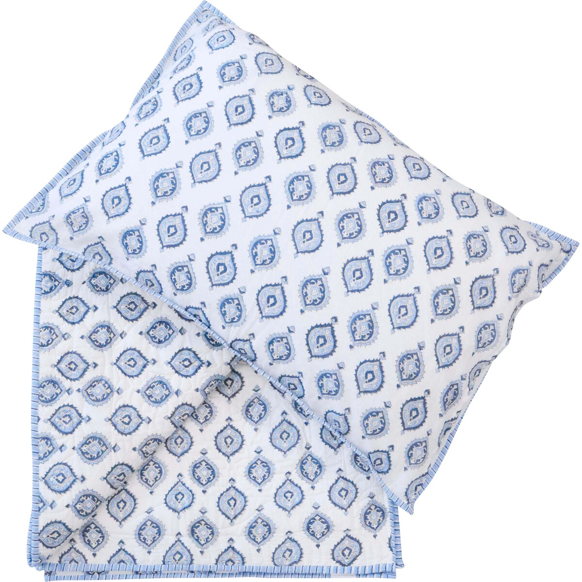The blue pattern on white background is simply stunning and adds freshness to any bedroom decor. It's versatile enough to complement various styles, from modern to traditional, making it an excellent addition to your homewares inventory. And don't forget the care instructions: gentle cold water wash, do not hang or display in direct sunlight. Overall, Quilt Set Maya is an elegant and practical bedding set that your customers will love.
