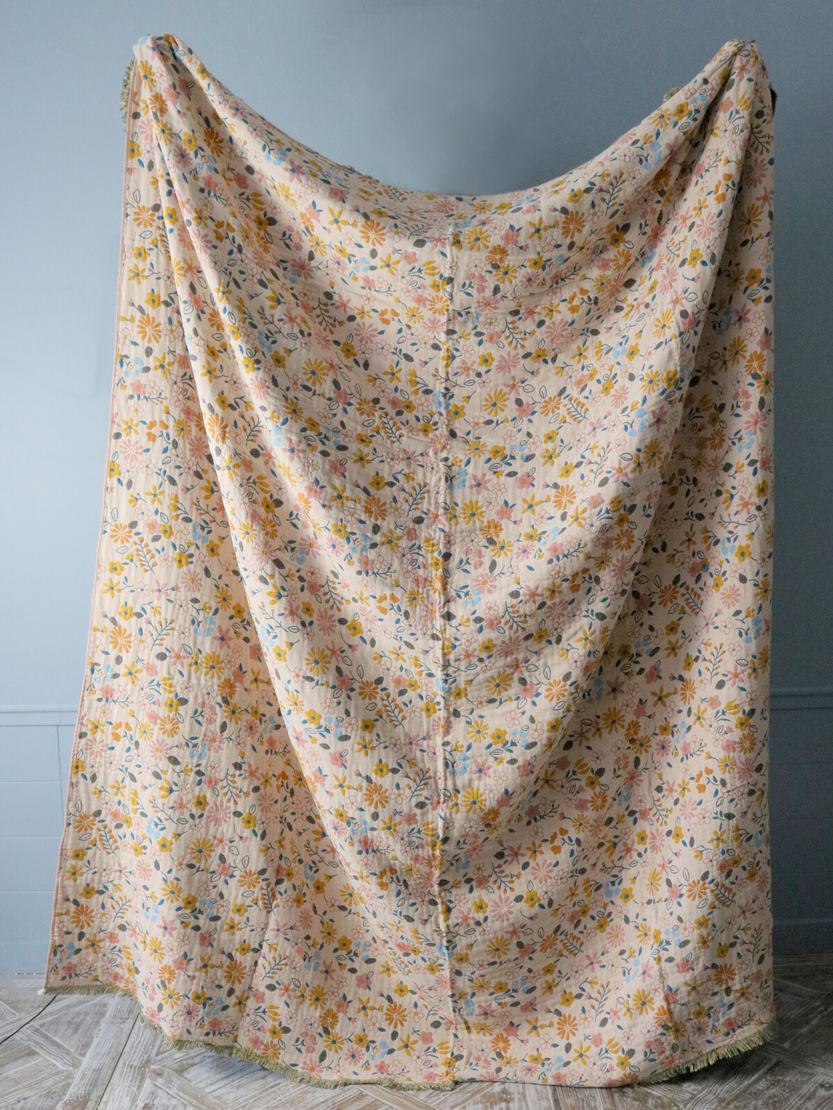 It’s got that unique floral pattern too, really brightens up any lounge or bedroom. Whether someone wants to add a bit of vintage feel to their decor or soften a modern look, it really does do it all. It comes in quite a generous size too - 230 by 200 centimetres - so customers can drape it over their bed or take it for a picnic (we know this because we’ve tested it in the wild ourselves!).