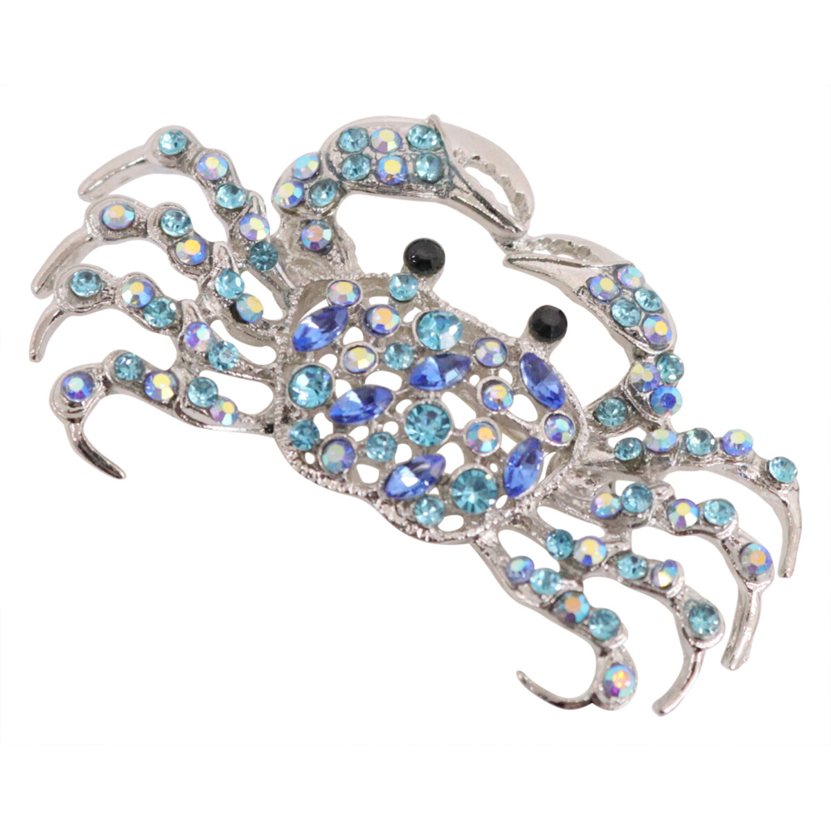 Now, this Brooch Crab is a proper conversation starter. At 5.5x3cm, it's just the right size to stand out without taking over, and its metal body shines with bright blue crystals that catch the light beautifully. It's a fun piece that will appeal to customers looking for something quirky and different - we can see it doing really well in shops with a playful or coastal theme.