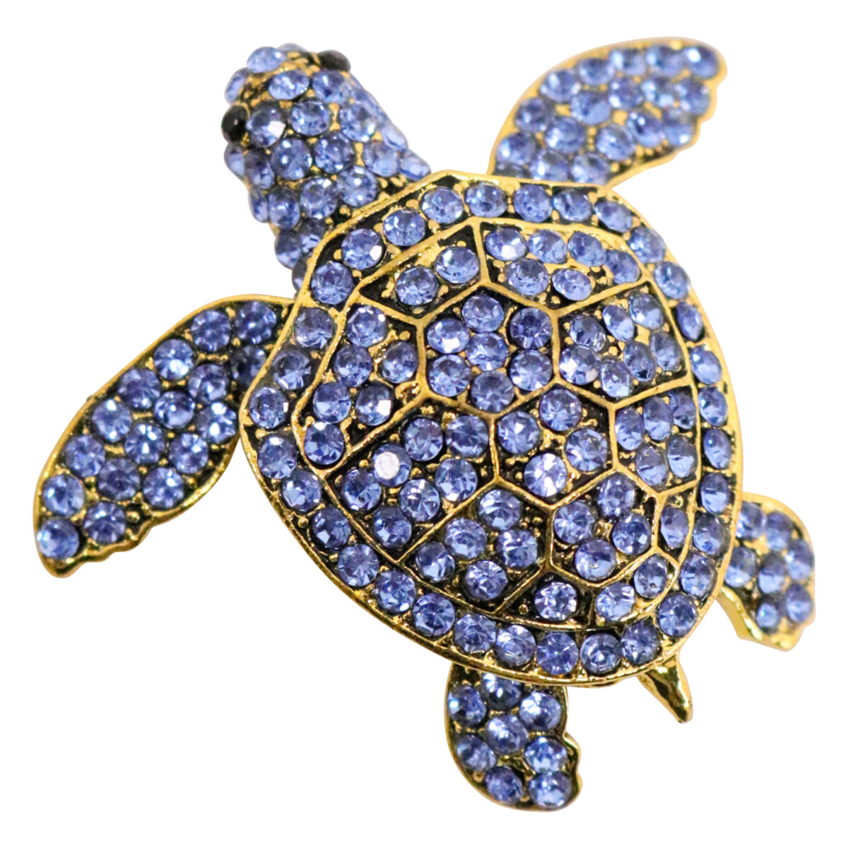 We really love how our Turtle Brooch stands out - the sea turtle shape gives it an adorable, whimsical look, while the sparkling faux gemstones catch the light beautifully. It's 4x5cm, so it's not too small or too big, and it has a lovely gold finish that brings out the blue stones. It's definitely a showstopper for animal lovers or anyone who likes a bit of sparkle on their lapel or bag.