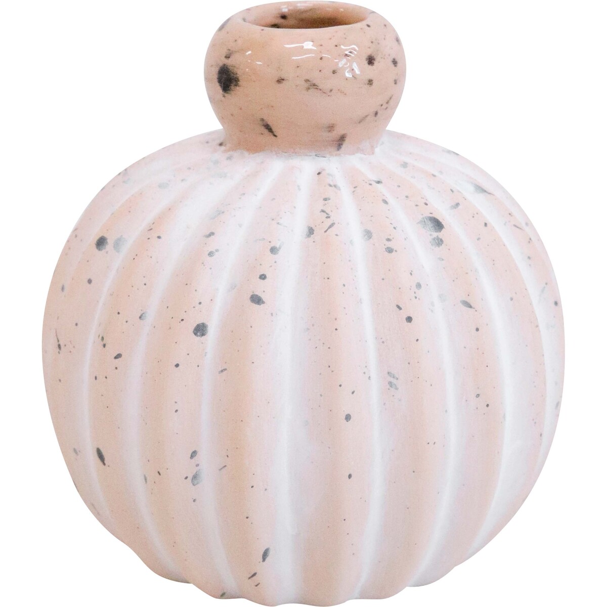 Bud Vase B Mineral 9x9x10cm We can't help but be taken with the Bud Vase B Mineral. It’s a really versatile piece that sits nicely between classic and on-trend - just the sort of find that tends to surprise us with how easily it works in different spaces. At only 9x9x10cm, it fits into nooks and tight shelves without getting in the way. And if you’re looking for something that suits both traditional and contemporary palettes, there’s a lot to like in its quietly unique design. The blush-tan ceramic is gently ribbed, and finished with white vertical accents and an organic speckle glaze on top. We like the interplay between matte and glossy textures - it’s subtle, but just enough to give this one real charm. It’s not too sweet, either. The soft round profile has a slightly abstract vibe, so it doesn’t tip over into being too “girly”, which keeps it feeling fresh from season to season. We’ve seen a big shift toward nature-inspired neutrals for gifting - especially ceramics in pastel tones or sandy finishes. This vase is well-suited as a decor piece for bedsides or bookcases - it really sits pretty with dried florals or kept empty in minimalist homes. You can pair these as a set of three or five without worrying about clashing patterns or too much colour on a tablescape. It’s quite understated - we think this makes it a fabulous staple for customers who prefer quiet warmth rather than bold accents at home.