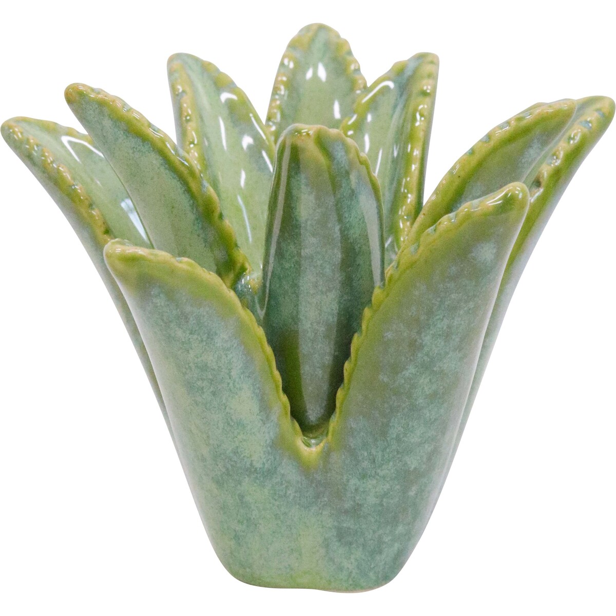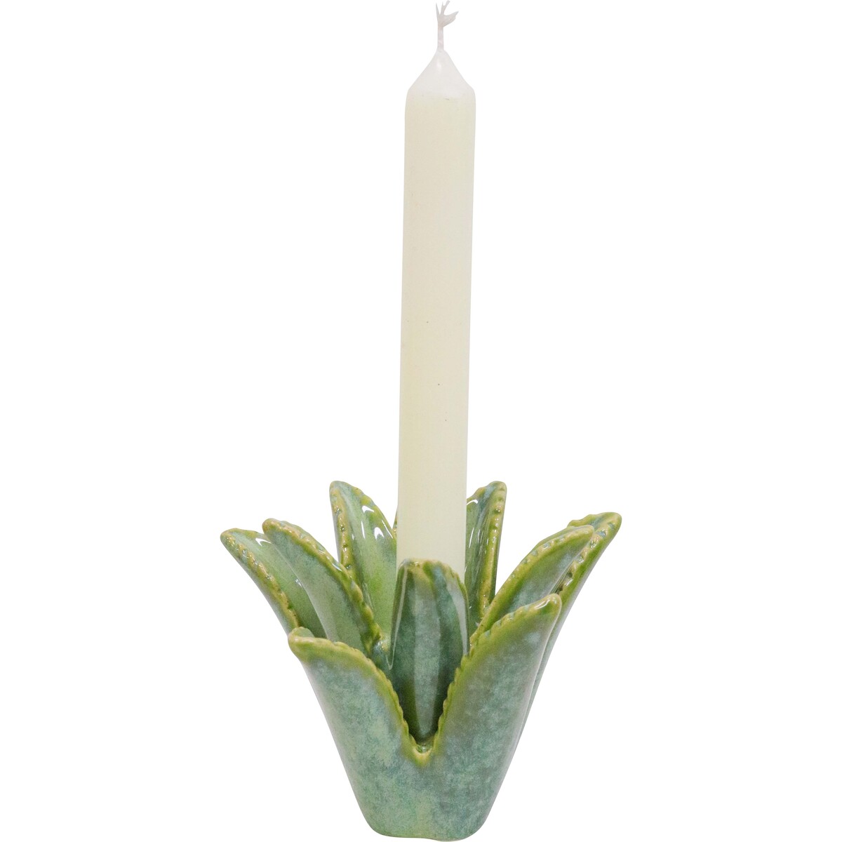 This Candle Holder Med. is a real eye-catcher and adds a lovely botanical feel to any display - it's perfect for anyone who wants to bring a bit of nature inside without any of the hassle. It's crafted from stoneware and measures 13.5x12x10.5cm, making it big enough for impact but still easy to style on shelves, tables or counters. And that gorgeous green glaze really works with all sorts of decor schemes, so it's quite a versatile pick for your customers.