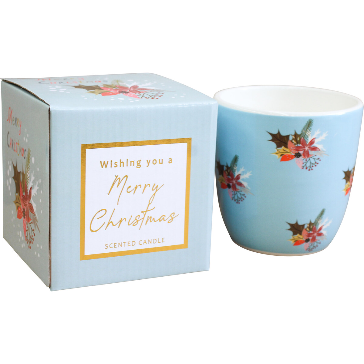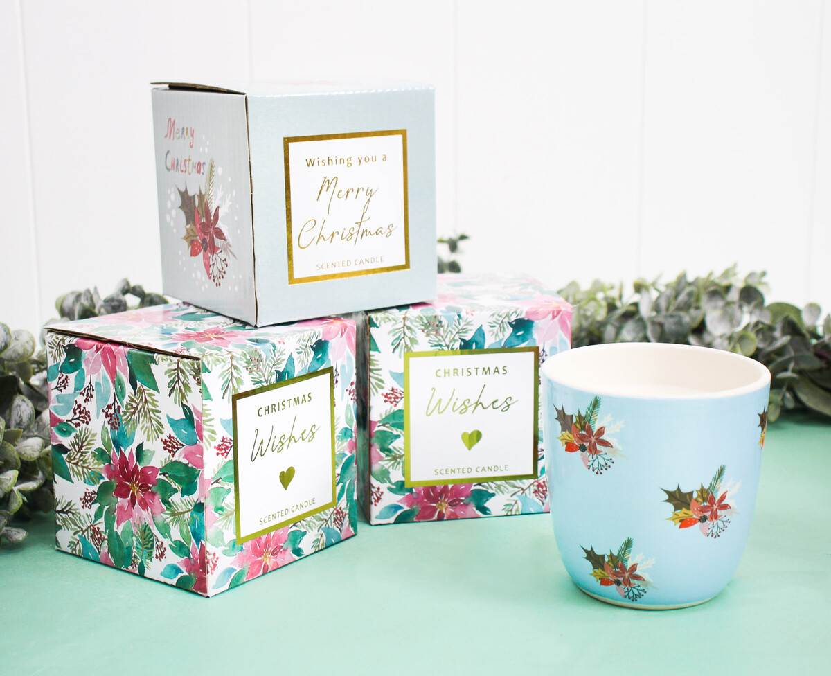 We absolutely love this Candle Merry Christmas 1 for its classic seasonal feel that works right through summer or winter, and fits nearly any shop display you want to try it in. Something about its combination of muted aqua blue and deep festive flowers makes it a standout addition to homewares shelves or as an on-trend accent piece for the office - plus, it's honestly just a beautiful thing to look at. Right, there’s a note to make here: while these candles are marked as “scented candle” on the box, the high Aussie summer heat has meant the fragrance oil’s evaporated a fair bit and they’re best sold without the packaging as decorative (fragrance-free) pieces. And with how much colour and charm is in every 10x10cm candle, that’s not really an issue. The clean lines of ceramic, lightly glossed finish, and stylised print all add up to a look that keeps modern spaces fresh but still feels timeless enough for families to enjoy year after year.