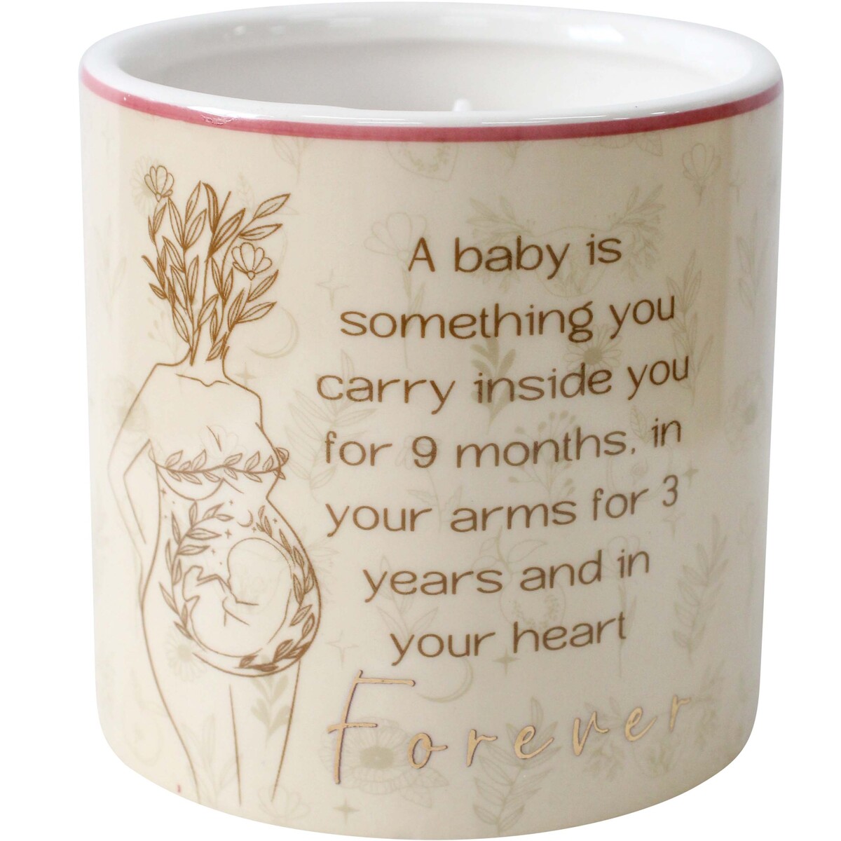 We absolutely love this Pregnancy Candle. There’s something so special about the design - it’s gentle, thoughtful, and beautifully suited for a mum-to-be. Its smooth cream ceramic holder (with vanilla wax), delicate line art, and heartfelt message make it a standout for any homewares or gifting display. What people really appreciate about these pregnancy-themed pieces is that they are thoughtful keepsakes, not just a generic new baby gift. And let’s be honest, there is something really lovely about giving a pregnancy candle to an expectant mum - she can use it right through her pregnancy to create those moments of peace. Perfect to display at any time of year (not just for Mother’s Day), we’ve seen these do well at baby showers and as an alternative to more traditional Christening gifts. The dimensions are nice too at 9.5 by 9.5cm - they work on side tables, benches, desks, or shelves. The light beige colour with the touch of pink around the rim ensures it fits in with almost any home or nursery decor style - perfect for contemporary spaces as well as more traditional ones. It also adds a stylish touch to waiting rooms and offices, especially if you work with mums and families. Now, one thing we will say is that packaging is not part of the product so we cannot offer credits for faults or damage there - but the candles themselves are so pretty they’re unlikely to sit on shelves very long!