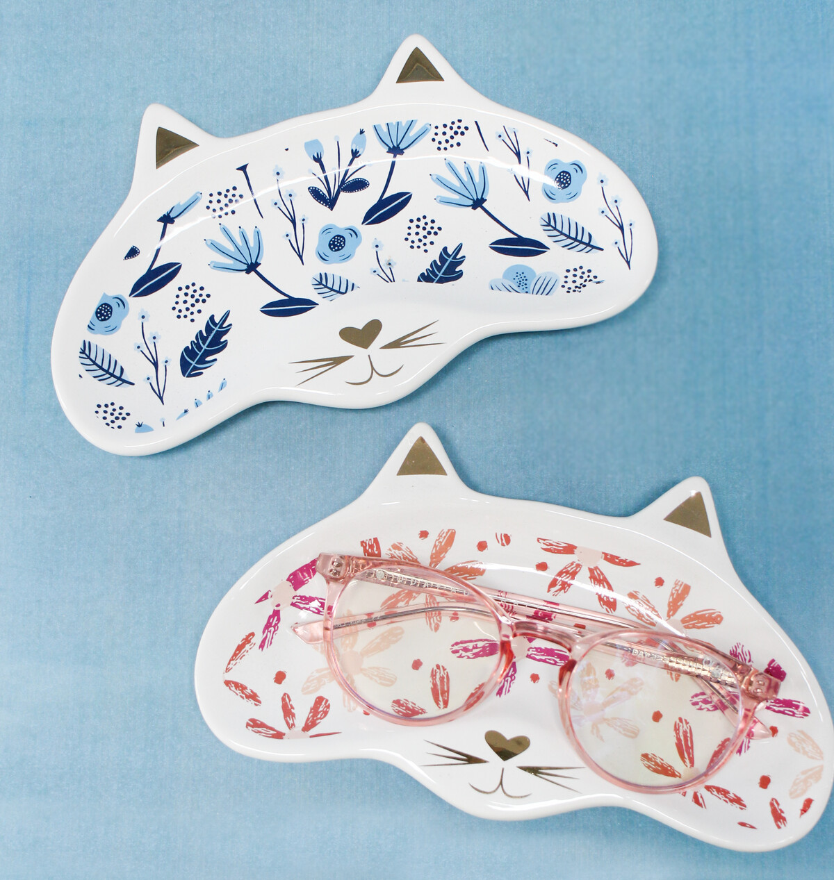 Cat Trinket Glasses Dish Blue Folk