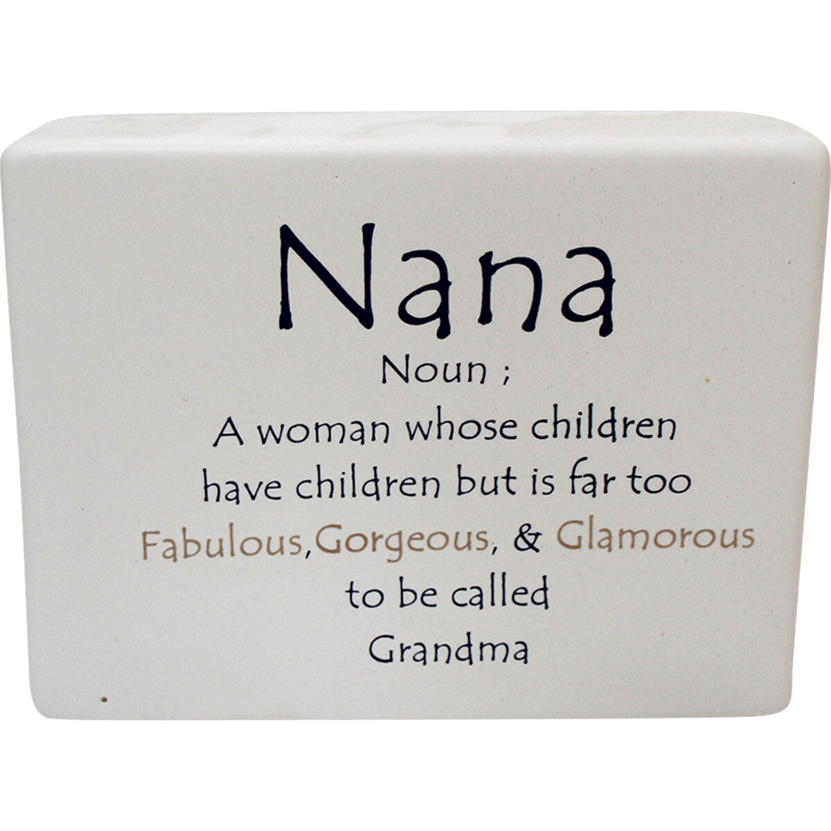 We love what our Ceramic Sign Nana Glamorous brings to our range and our stockists, too. It is a whimsical piece designed for nanas with flair. With its dimensions of 13x4x10cm, this handcrafted and finished sign is made from durable ceramic, ensuring it stands out without being too much. The message on the sign is just pure fun - Nana: A woman whose children have children but is far too Fabulous, Gorgeous, & Glamorous to be called Grandma. It's a great gift option for grandmothers who appreciate a touch of glamour and individuality in their decor or even as a fun present that their grandkids can give them. Maybe you've not thought about grandparents as a gifting segment before (you should because there are thousands of them), but if you haven't, this could be a great way to get started. The neutral colour palette complements various decor styles, making it suitable for home or office settings.