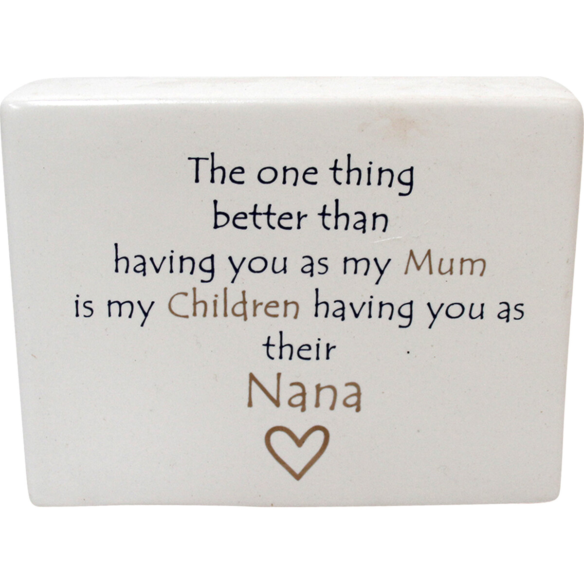 We think this Ceramic Sign Nana Grandchild could be a strong addition to your giftware selection, especially for those sentimental customers who really want to show appreciation for their mothers and grandmothers. People love these kinds of signs because they bring a bit of personality and warmth into the home or even a workplace desk – especially as we get closer to Mother’s Day. Not only does it look lovely, but it’s designed in a way that blends nicely with just about any décor style. The soft, neutral colouring means it works well in modern homes and more traditional settings.