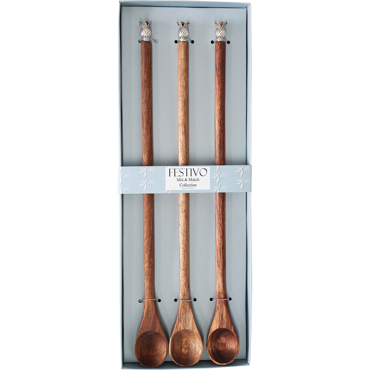 Okay, these Chef Tasting Spoons with the Pineapple touch, they're kind of a standout in any kitchen or gift section. At 12x34x2.5cm, they're bigger than you'd expect - and that longer handle gives them a solid presence. We think the acacia wood pairs nicely with the metal pineapple top, it's a bit quirky and a bit classic at the same time. We know shoppers are all about kitchenware that's both functional and something you want to leave on display. These tick both those boxes. The colour is warm, neutral enough to fit in well but still rich from the wood grain itself.