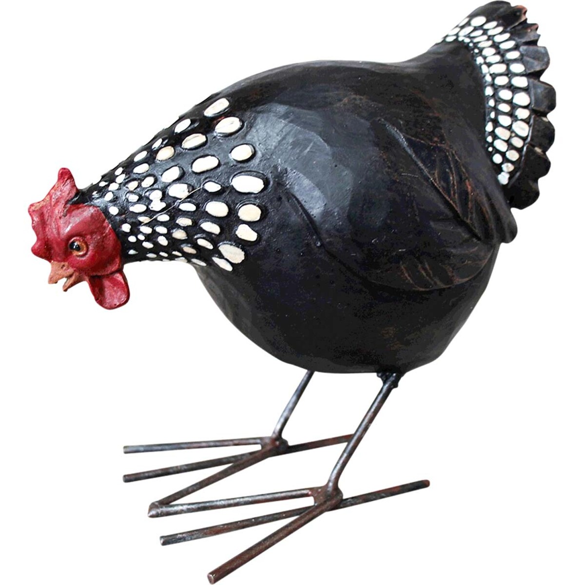 There's just something about the Chicken Black Sml that makes it such a cheeky little addition to any shop. We love the bold contrast of its black and white resin body with its bright red head - it really makes a statement without being over-the-top. The sturdy iron legs give it a bit of extra personality, and at 13x7.5x13cm, it's easy for retailers to pop onto shelves or tabletops for a quick boost of farmhouse charm.