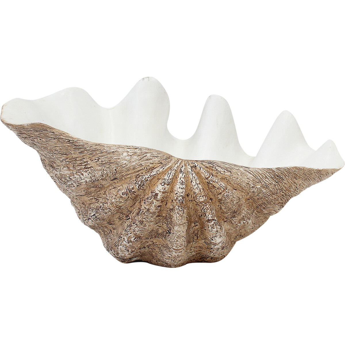 We can honestly say this Clam Shell Lrg is a bit of a showstopper - it’s such a striking piece. There’s just something about these natural statement accents that gives an ordinary shelf or coffee table this air of casual luxury. We’ve seen plenty of customers who might be a little unsure at first but end up absolutely loving it - one of those things that looks even better in real life than in pictures. The resin material, finished in a textured brown and white, gives it this great realistic quality without any of the worry or guilt of collecting actual shells.The scale of the shell at 38x26x19cm means it is incredibly versatile - big enough to command attention as a statement centrepiece, yet not so large that it can’t easily fit as part of a more layered display. It works beautifully for coastal, Hamptons, or even modern minimalist styles - really easy to style up or down. Very popular for holding potpourri, shells, keys, sweets, all sorts - we’ve even had wedding stylists use them as reception decor!