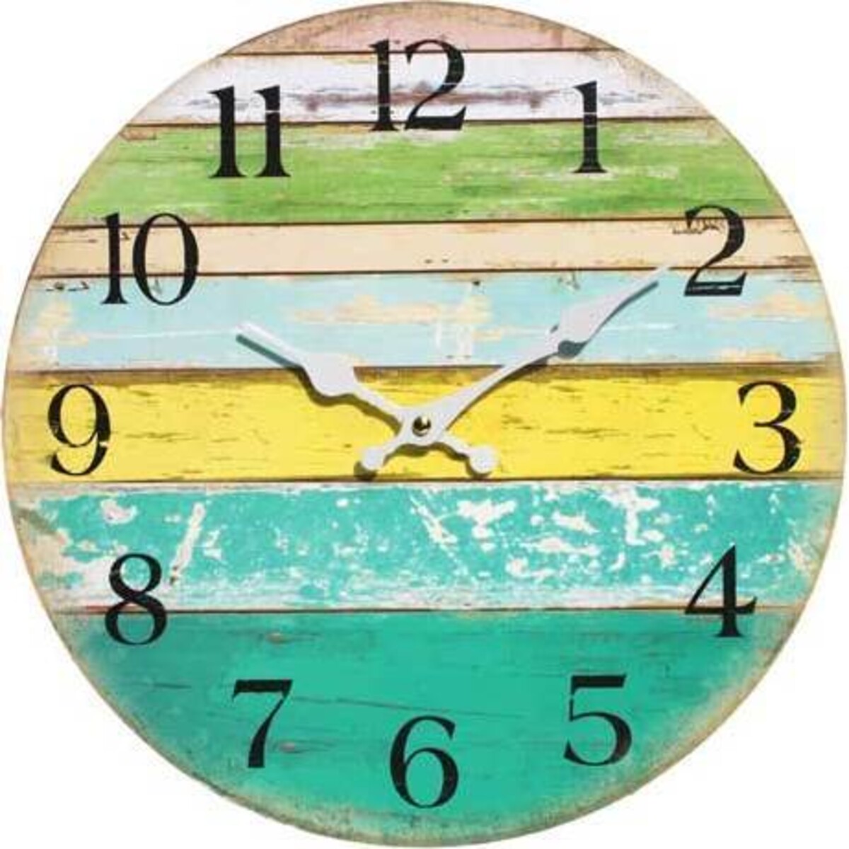 We keep coming back to this Clock Coloured Boards 34cm - the colours just really pop, don't they? We love the vibrancy. It's a bit eclectic, a little coastal, and has that perfectly imperfect finish that keeps customers leaning in for another look. Bold black numerals are a practical touch that means this design still has universal appeal. Our team likes how each of the 'painted' boards is different. Like it's telling the story of a studio somewhere bustling with painters and creators just out of view. The clean white hands set off all that colour. This is one for Hamptons style homes, poolside spaces or fun little nooks - it doesn't take itself too seriously but still feels purposeful and cheerful. At 34 x 3 x 34cm it sits comfortably above a desk, bedhead or side table without dominating the space but also won't disappear into a noisy gallery wall. Made from quality MDF and built to last. One tip from our team - always use high quality batteries to keep the time ticking along with accuracy.