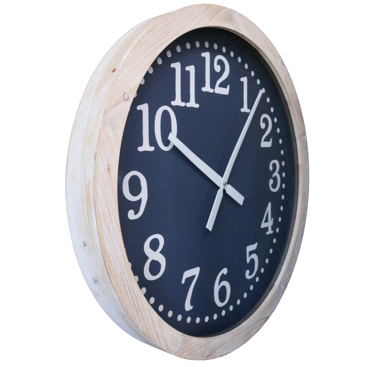 Our Manhattan 60cm clock has a bit of that New York loft kind of vibe. There’s something about that bold charcoal-grey face with those white vintage numbers that just works - for a kitchen wall, a home office, or even in an actual workshop. It’s all contained in a warm, rustic-finished wood frame that’s got a lovely grain coming through. The mix is just right - minimal but with real character, and it doesn’t ever feel cheap or cold. The hands are classic and not too plain. It’s got presence but isn’t obnoxious, if you know what we mean? We think it’s the sort of piece people who come into your shop will point at and go “I love that”. You get a crisp, easy-to-read face and a battery-run mechanism inside - but make sure whoever buys it uses high-quality batteries for proper accuracy. It fits almost anywhere. 60x60x6cm round, MDF but doesn’t feel like it at all. If you want statement wall clocks that still feel timeless - this is the one to try.