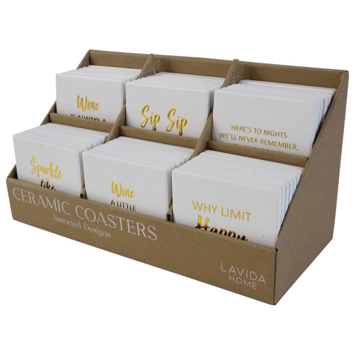 Our Happy Hour Assorted Coaster set is one of those instant favourites you find yourself reaching for whenever friends drop by – and it's a brilliant addition to any retail range, especially coming into the party season. Each 10x10cm ceramic coaster pops with a touch of gold and playful banter that feels right at home with everything from rustic timber tables to ultra-modern minimalist kitchens. We have seen customers grab a few stacks at once - they're such a clever option for gifts or as part of a curated entertaining theme.