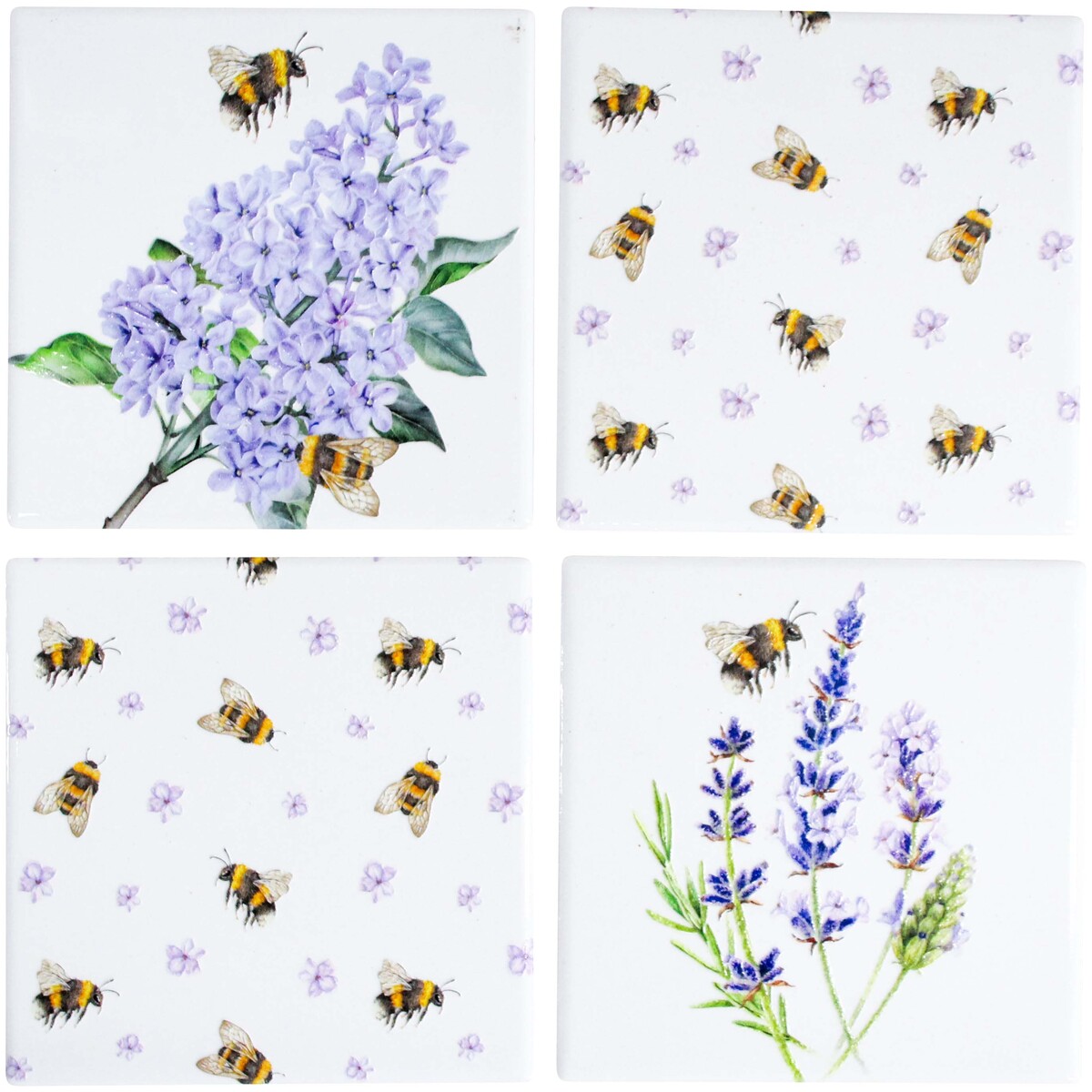 We are proper fans of these coasters. And it's not hard to see why. Each coaster in this lovely Bees and Lavender set of four feels like a tiny piece of art, but it's practical enough for everyday use. The design isn't just generic bees and flowers, either - these feel a bit more posh, with soft watercolour lavender and gentle bee illustrations that bring a cheerful springtime vibe. They aren't just cute - they actually work with a surprising number of modern decor styles. Minimalist spaces? Cosy country? Classic contemporary? We've seen them fit right in all sorts of shops. They're ceramic, so they'll last through countless cuppas and gatherings without wearing down too quickly. The 10cm by 10cm size is roomy enough for anything from espressos to iced coffees, but doesn't take over the table. They look especially good as a set laid out together on display, which is... well, pretty handy really for visual merchandising!
