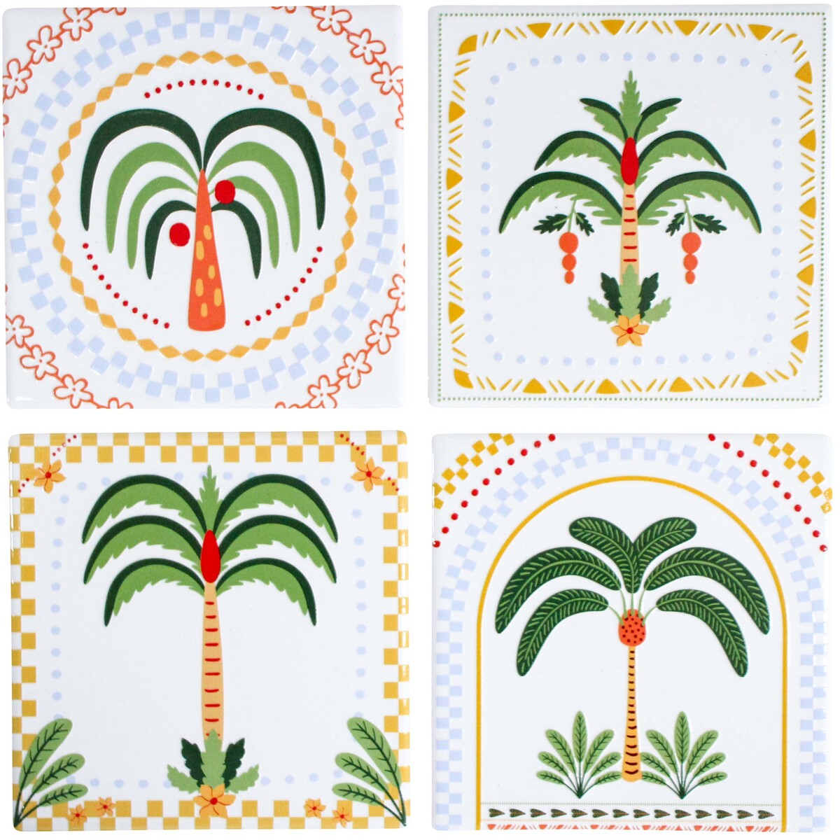 Our ceramic Palms Coasters Set is a cheerful twist on what can sometimes be, let's face it, a bit of a boring product category. Everyone needs coasters - they're an everyday essential for keeping surfaces ring-free - but these ones do double duty by giving off that sunshine-drenched holiday vibe. We've even noticed how the hand-painted details of each palm are full of personality, not to mention easy to blend with boho, coastal, or even contemporary themes. And the real clincher for us? Each coaster has its own distinct design (no repeating prints) which just makes them more fun and keeps things interesting at the table or on the coffee table.