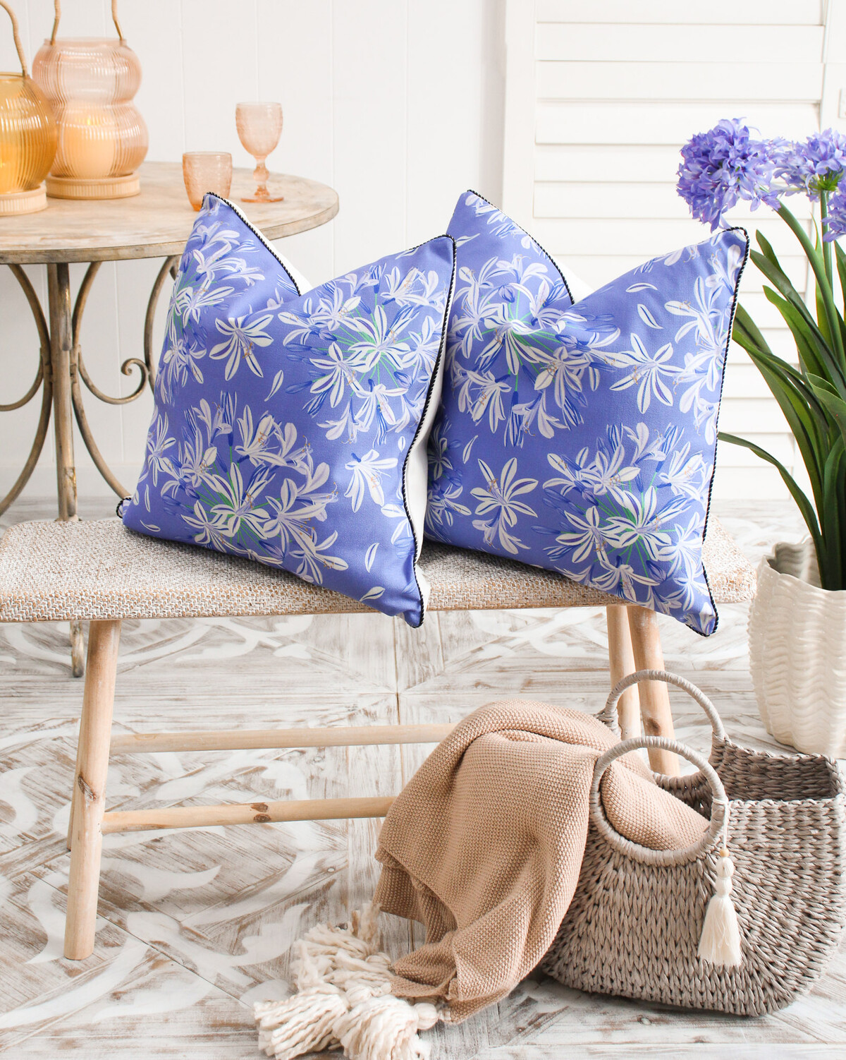 Our Cushion Agapanthus Bloom is the sort of piece that catches your eye for all the right reasons - stylish, super comfy, and genuinely versatile. These cushions are a wonderful way to brighten any space with their calming blue base and gentle floral motifs. And we love how this print blends the feel of classic floral with crisp, modern lines. It’s relaxed but curated.