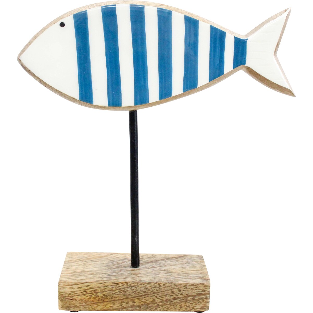 We absolutely love the Decoy Fish Sardinia for its clean, breezy look and classic coastal vibe. Customers looking for a touch of the Mediterranean in their decor will be drawn to this piece - at 20x6x23cm, it works perfectly as a shelf accent or a quirky addition to a desk or windowsill. The bold blue and white stripes are hand-painted on wood, with a sturdy metal stand and natural timber base that keeps it grounded and feeling high-quality.