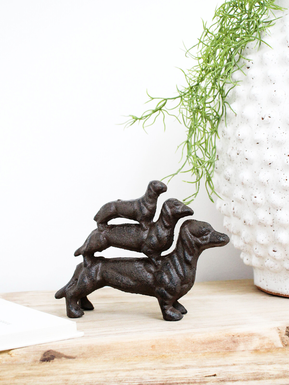 Each cast iron stack features three sausage dogs, standing on each others’ backs. They have an industrial vibe but they suit every decor style from farm house to Hamptons. Your customers will love how robust they feel and know their quality and value is top notch for their price point.