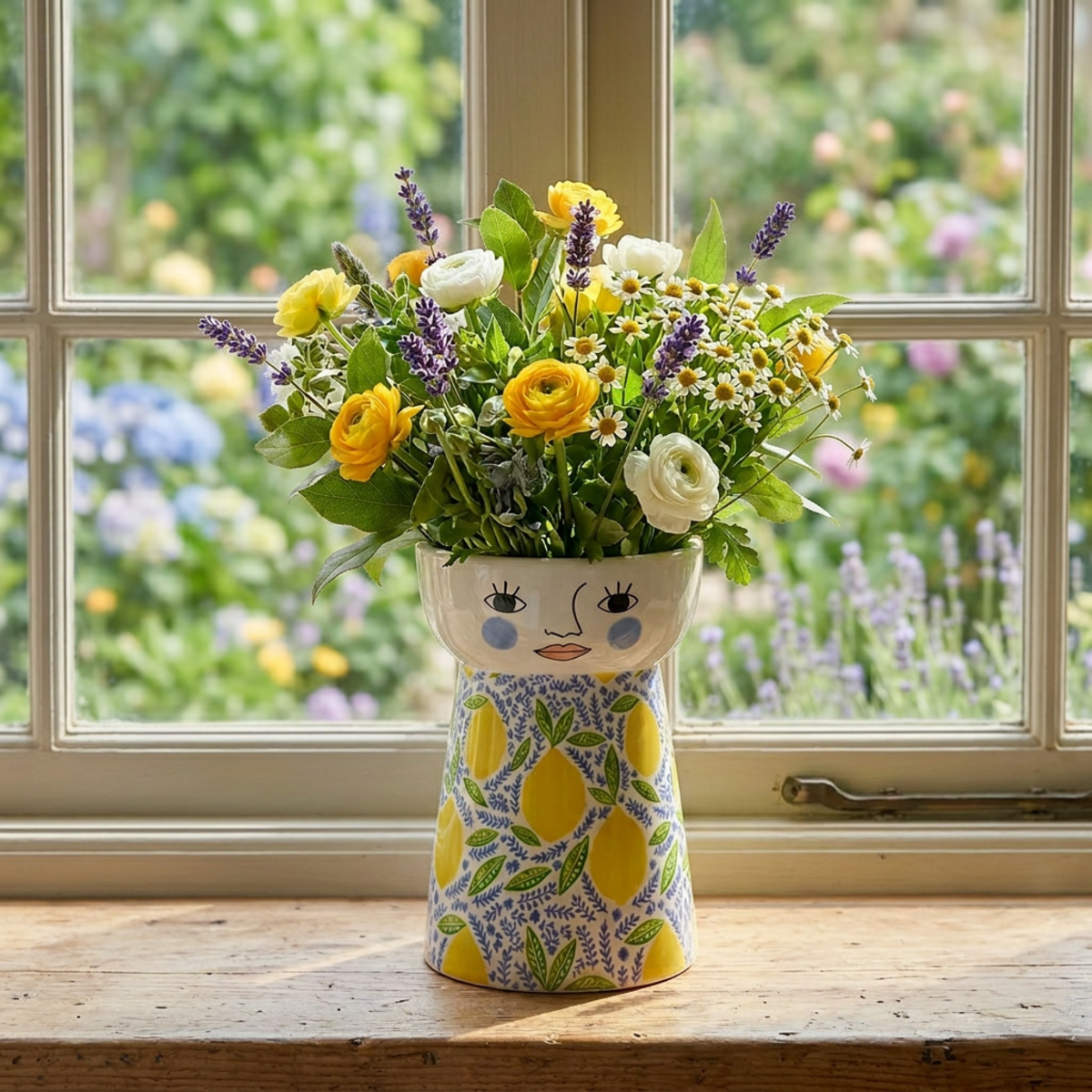 It’s always fun to bring a bit of personality to our shelves - sometimes we want our stock to feel like it’s staring right back at us. Doll Vase Lemons is quirky, charming, and a little bit offbeat. We think that’s what makes it a great talking piece that really draws the eye.