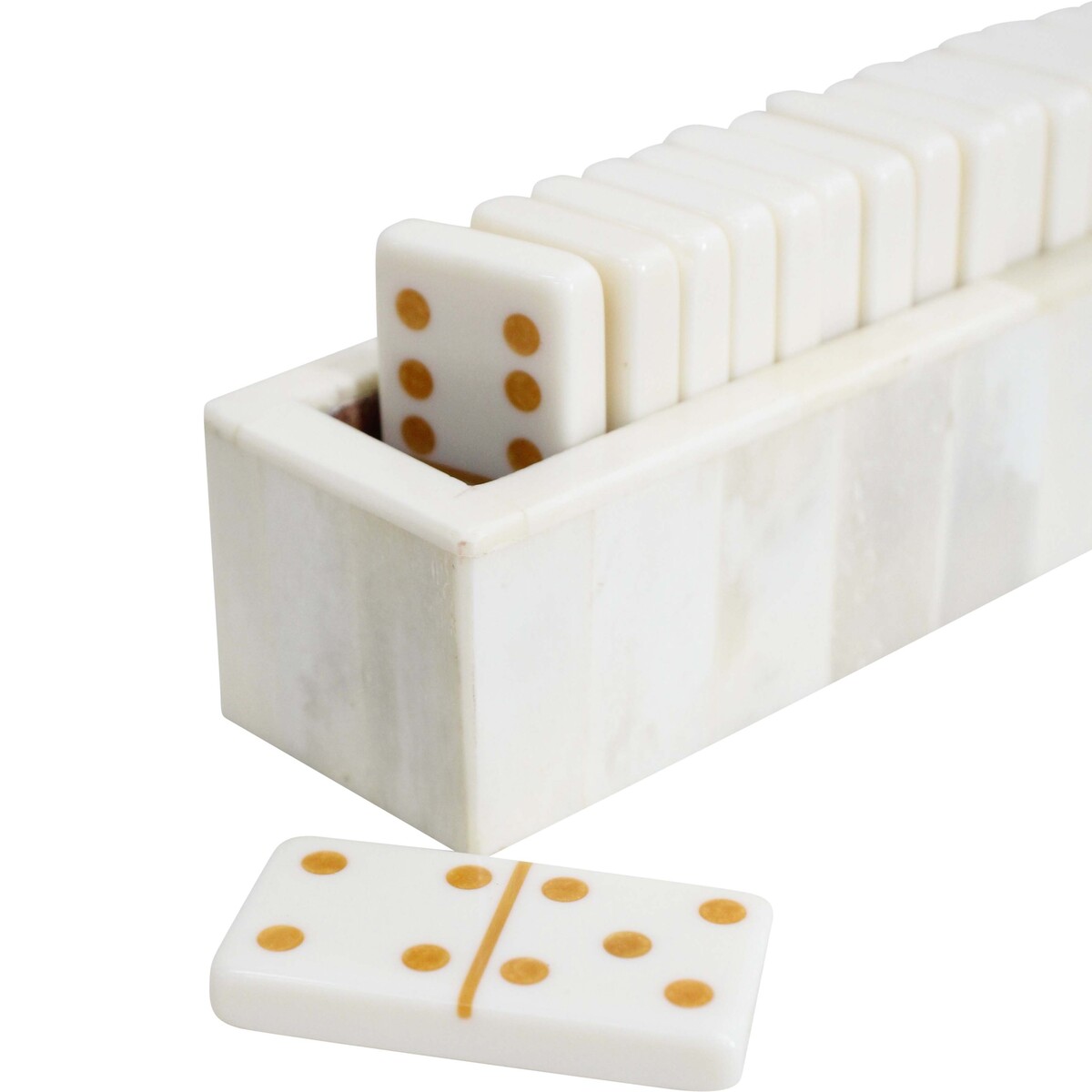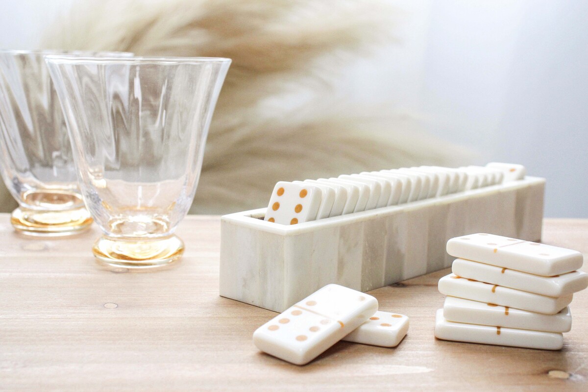We are absolutely loving how our Domino Set is bringing an old-school, handmade feel to tabletops everywhere. Customers who appreciate a unique touch will surely be drawn to this elegant piece. Handcrafted from bone, resin, and MDF, it's sturdy, timeless, and guaranteed to spark some lively conversation. Measuring 18.42 x 6.99 x 3.81cm, this set is stunning and functional all at once - slotting in easily as home décor or office décor. It’s especially lovely for workspaces as the neutral colours make it easy to mix and match with various decorating styles - classic to contemporary. Because this set is made from natural material, each piece is as much a one-of-a-kind artwork as it is a game - meaning you'll never get bored of it. It also makes a thoughtful gift for business associates or loved ones alike. And we have ethically sourced the bone material used here because we care about our customers’ concerns too.