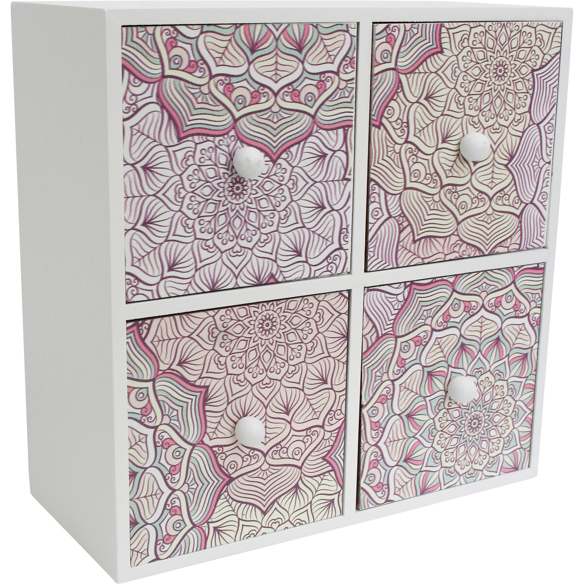 Retailers are always looking for something a bit different - something with enough style to stand out but not so much it feels impractical to sell. And our Mandala Colour Drawers are the perfect balance of bold design and easy practicality for customers who want to make organising a little more fun. These drawers are crafted from MDF, finished in white, and decorated with mandala motifs. Each drawer is different, featuring a unique mandala design outlined in black and filled with dreamy shades of pink, plum, and blue that range from soft to rich. The geometric patterns add texture and a bit of movement to the piece, but it’s subtle enough that it fits effortlessly into most contemporary homes. At 22x10x22cm, these drawers are compact enough for bedside tables and home offices alike - but large enough to stash bits and bobs without getting cluttered or messy. They look great on their own or as part of a mix-and-match display with other patterned decor. Customers will want them for entryways, bedrooms, kitchens, and all kinds of other places where storage needs personality.