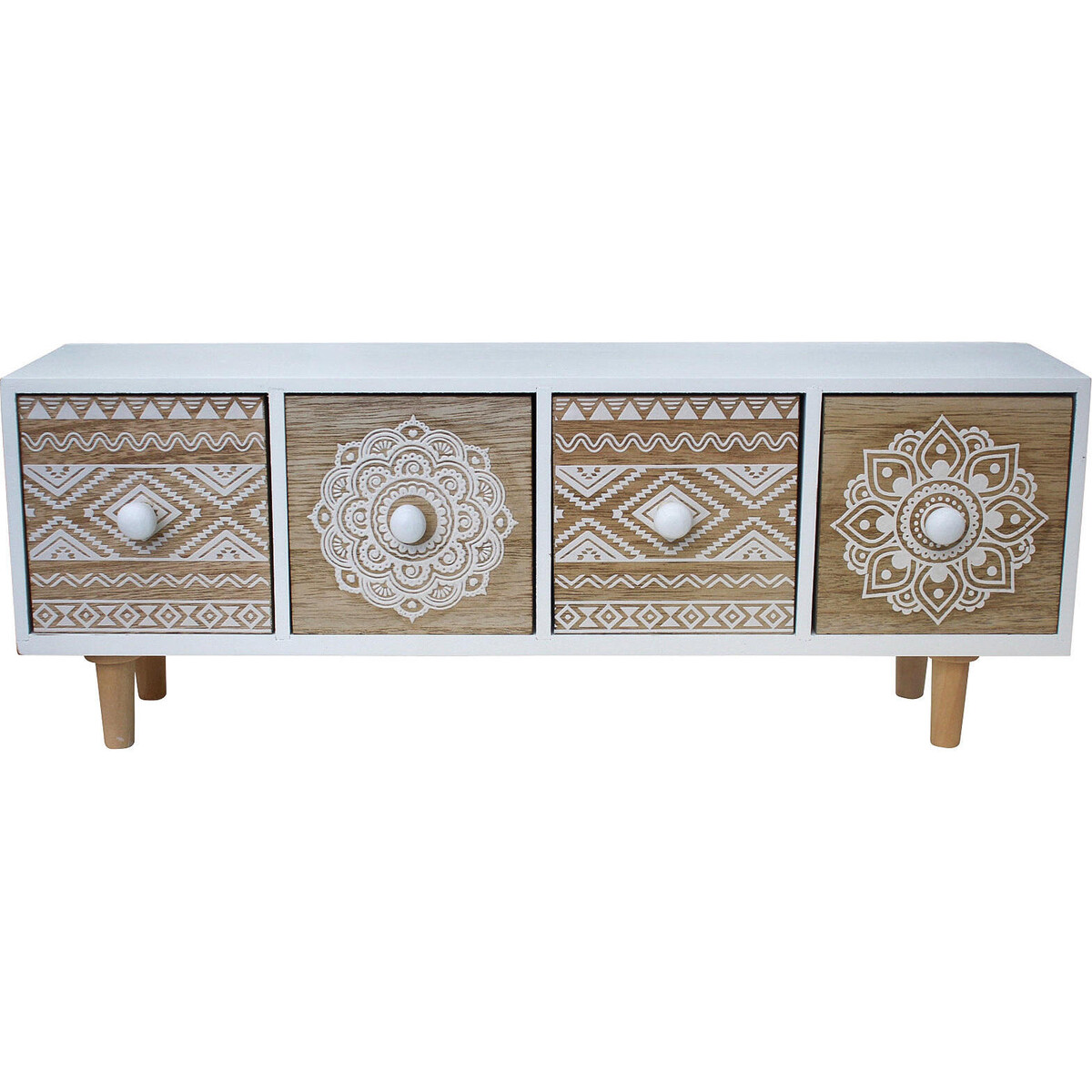 We always get asked what rooms this is best for and the truth is, anywhere really - bedroom, dining room, living room... this versatile design fits right in. The dimensions are 43x10.5x16.5cm and colour options include b’’ (neutral brown). It has four drawers and each one comes with its own unique mandala-style handle - we’re obsessed! This would make such a great addition to any interior design store or giftware shop looking for quirky but useful pieces that aren’t too much.
