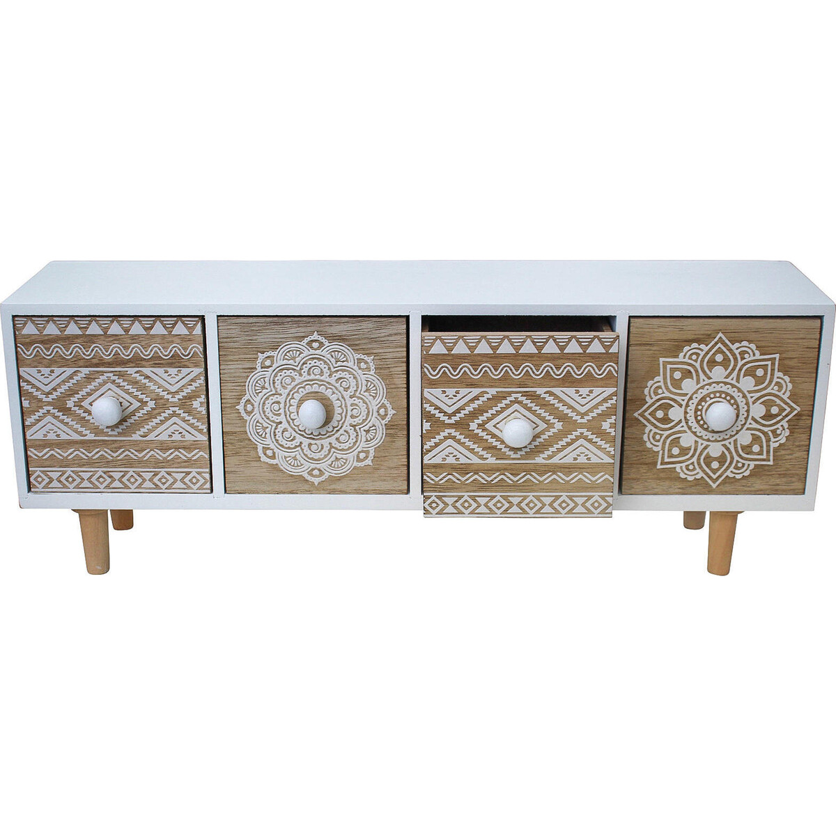 Well, you know how hard it is to find something that works just as well in a modern apartment as it does in a coastal-style lounge? Our Drawers Nevada 4 Long ticks that box. We’ve stocked a bunch of different homewares over the years - and these drawers really stand out with their crisp white, geometric detailing. They get a lot of attention when we’re doing the rounds at markets. It’s made from sturdy MDF so, honestly, it’s much lighter than most solid-wood furniture. And it looks amazing in open-plan homes or offices with lots of natural light.