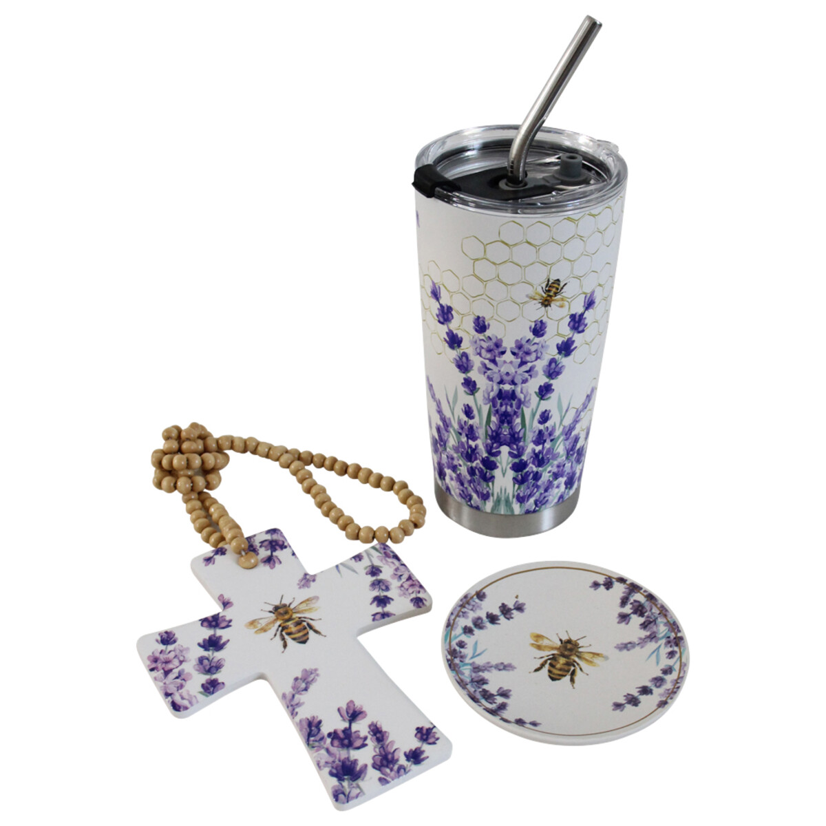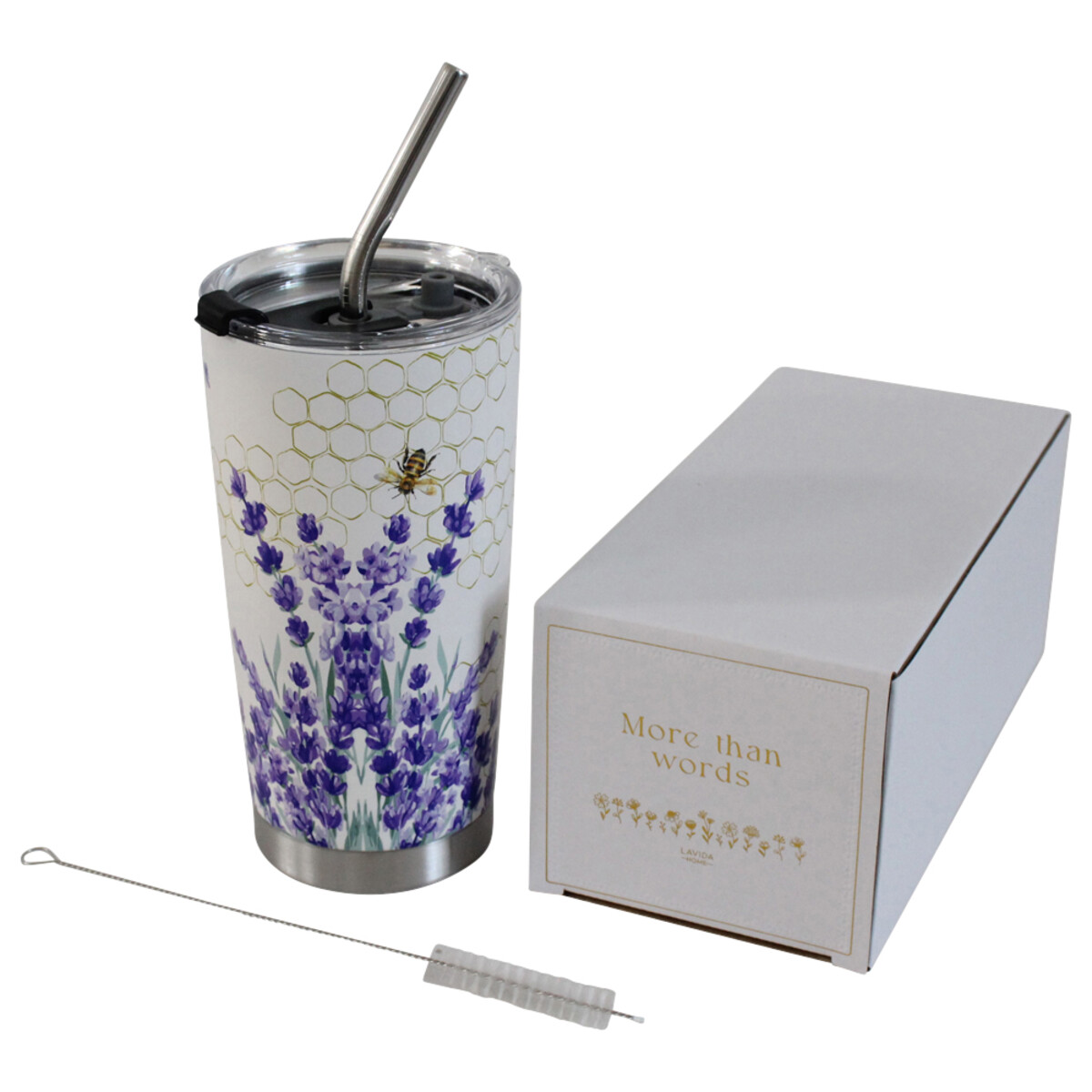 Here's a drink cup that is as practical as it is pretty. And we've all noticed that it's easy to find something attractive, but to have functionality too - that's what makes us pick it up again and again. Our Lavender Bee Drink Cup Set has quickly become a team favourite for those of us who do everything with one hand - always on the go. It's got this lovely design featuring soft lavender blooms in purple and green - plus a little honey bee motif to finish it off. The gold honeycomb pattern adds a touch of luxury without being flashy. We think the set would complement so many different decorating styles - French provincial, bohemian, contemporary, even minimalist!