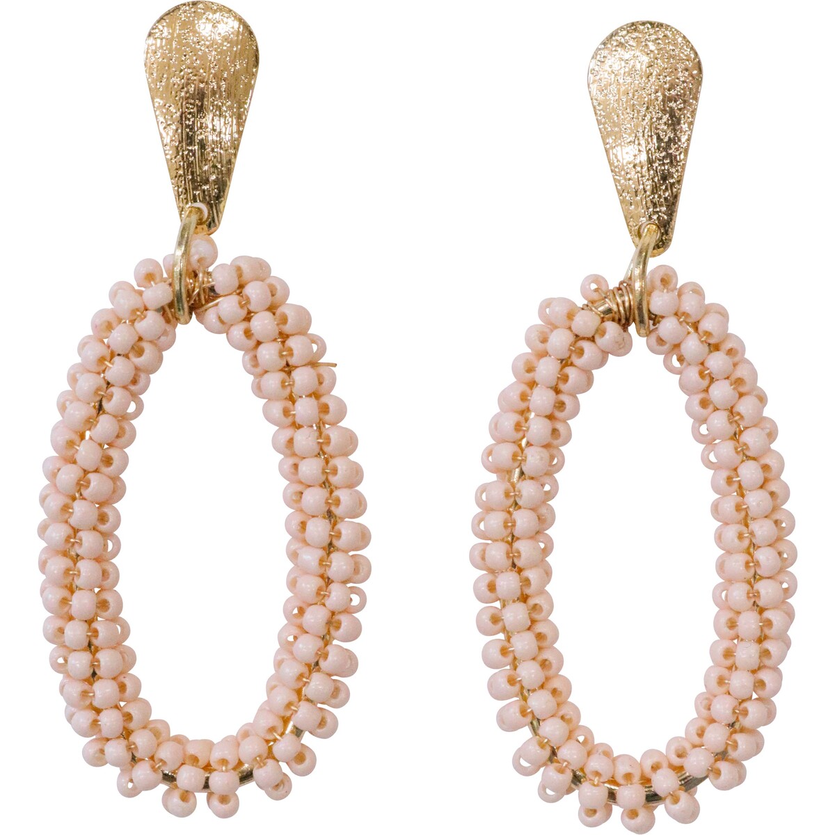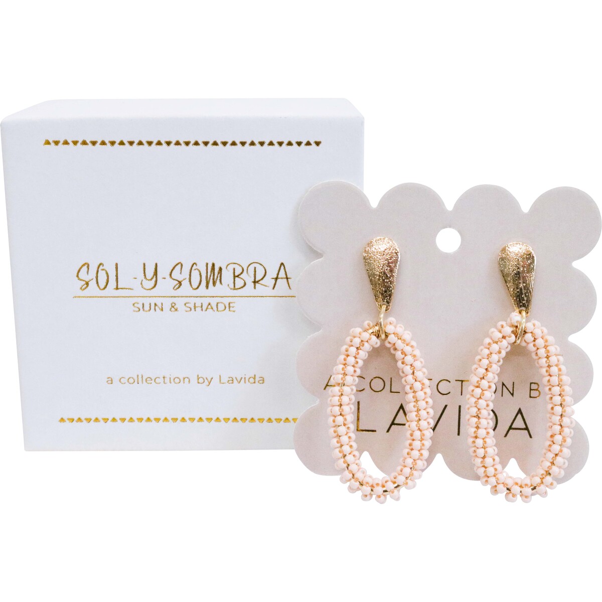What stands out is how versatile these earrings are. We see them going from brunches to dinner parties, or even on weekends by the beach - they're that easy to match. The oval loop is right on trend and we love the soft blush tone of the beads. Presented in our Sol Y Sombra box, they really do make a lovely little gift item too. And being lightweight means they’re comfortable enough for all-day wear.