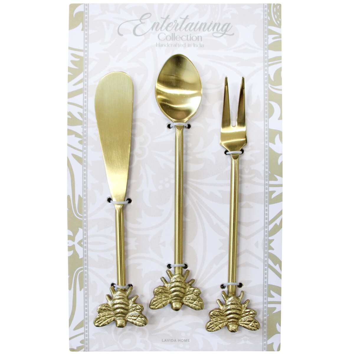 Now each set is handcrafted in India. The finish on every item has its own little quirks. There’s a bit of variation in colour and detail, which is part of the appeal of buying handmade. These bee servers strike a balance between looking fancy and feeling friendly, if you get what we mean. They’d fit nicely into homes that like a bit of whimsical charm.