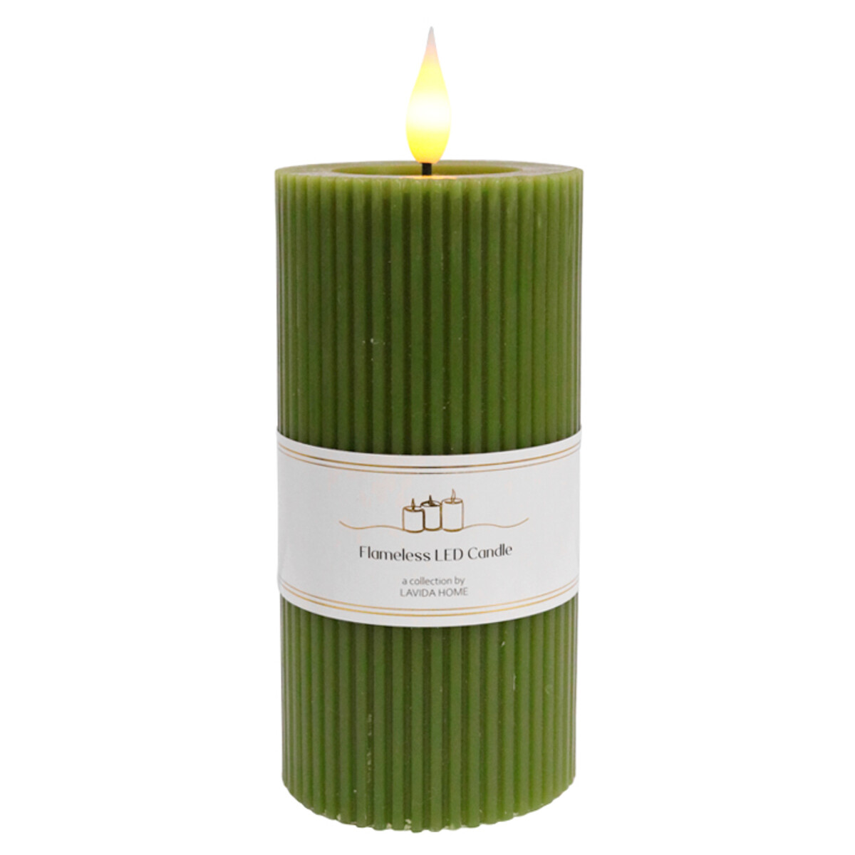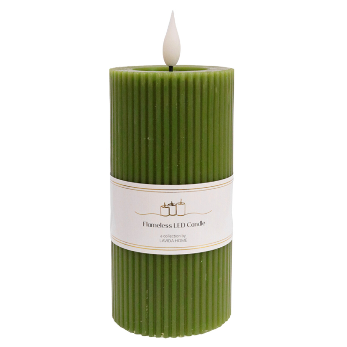 Flameless Candle Med Olive Ribb