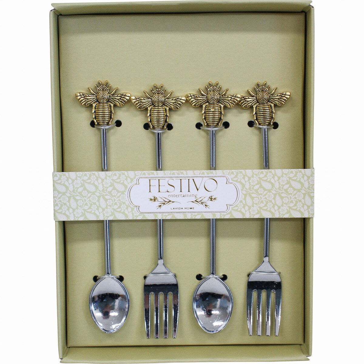 The thing about bee-inspired design is it can look vintage or contemporary - it all depends on what you place it with. The stainless steel finish makes it feel light but sturdy; the handles feature intricately carved bees in golden alloy, adding brightness to any table. The spoons measure 14.5x10.5x2.5cm, so they work for both dessert and coffee service - we like that versatility! And they’re metal but need handwashing to keep that bee shining bright. It’s the sort of conversational serveware we’re seeing do well lately - cute and practical with enduring appeal.