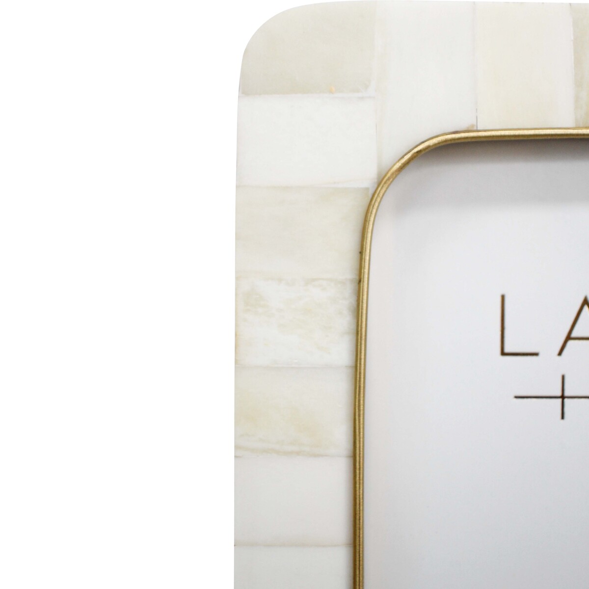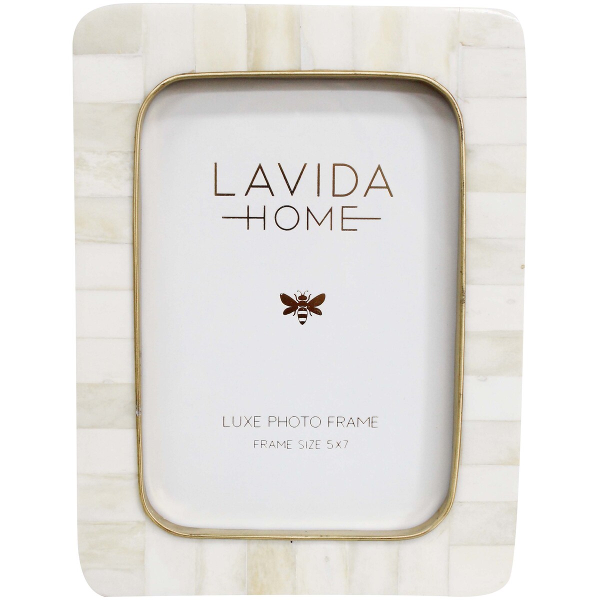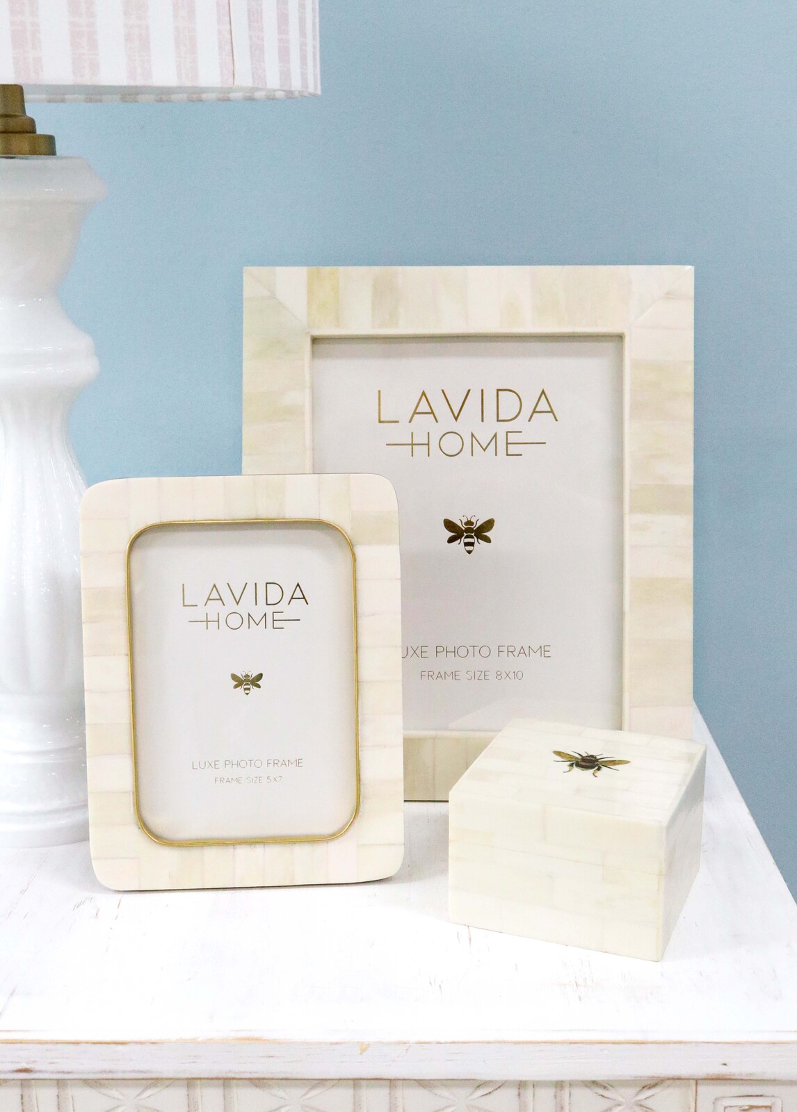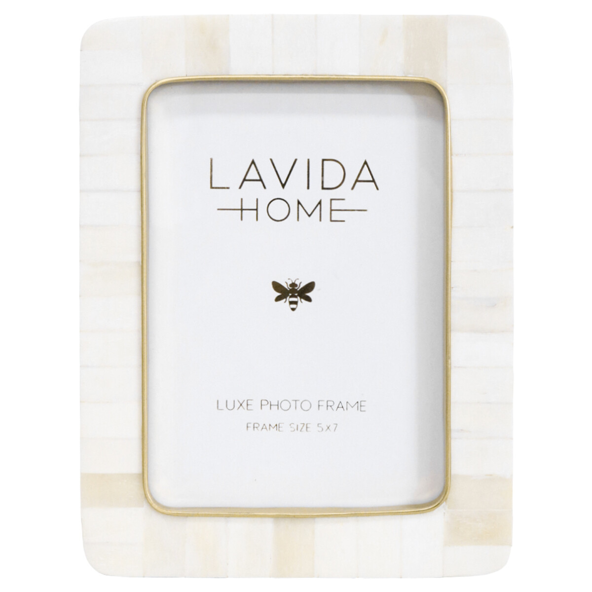 Introducing the exquisite Photo Frame Bone 5x7, a stunning addition to any homewares or giftware collection. Handcrafted from ethically sourced bone, brass, and MDF, this unique frame celebrates the artistry of its natural materials, making each piece distinct. Measuring 16.51 x 1.27 x 21.59 cm, this frame elegantly showcases your cherished memories, effortlessly enhancing both contemporary and traditional decor styles.