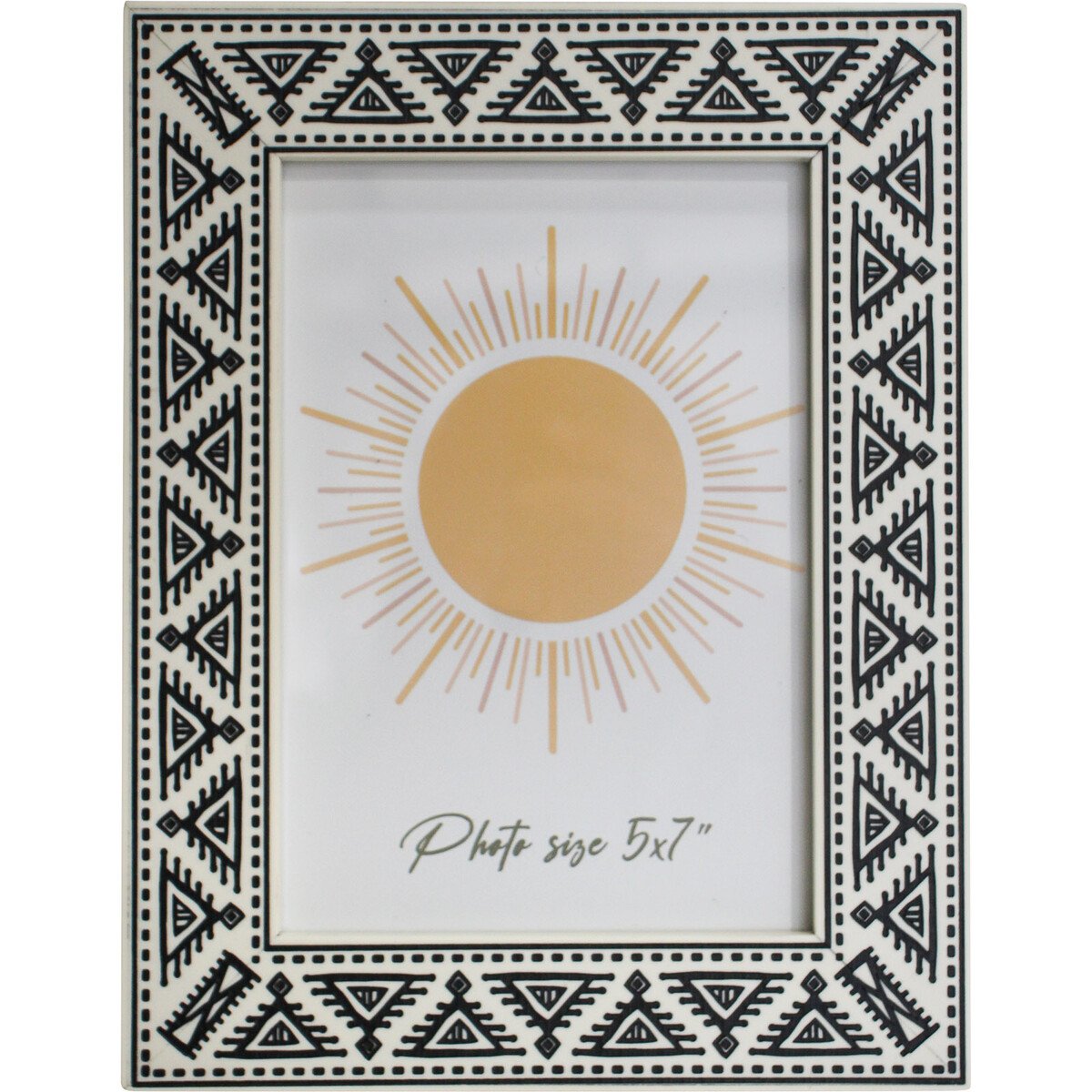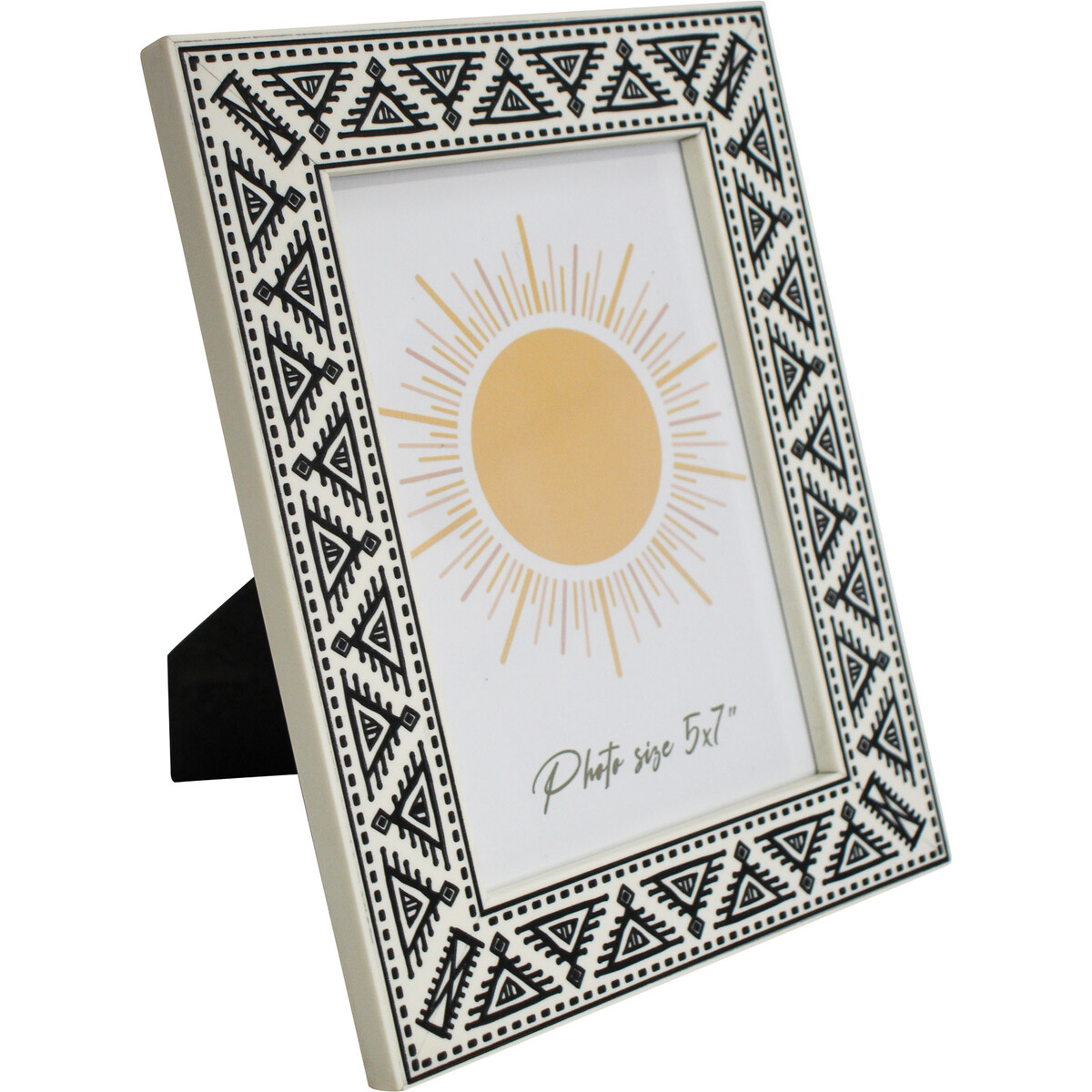 We're really excited to share our Frame Catania Black 5x7 with you. This one’s got a bold look that plays so well with all kinds of decor - modern, boho, coastal - pretty much everything we’ve seen so far. The matte black-and-white tribal-inspired pattern is laser cut (honestly, it makes the acrylic pop against that warm MDF background), but it’s still subtle enough to suit simple rooms and offices too. We reckon photo frames need that little bit of detail - just a touch of a pattern or texture - something to get people picking them up and seeing how they feel in their hands. At 18.5x2x24cm, this one stands out on an end table, bookshelf, or above a console without looking busy or oversized. And being that classic 5x7 format? It’s big enough for special moments, but easy for customers to swap out with any new favourite print. We love this as a housewarming piece too - add their first family portrait and there you go.