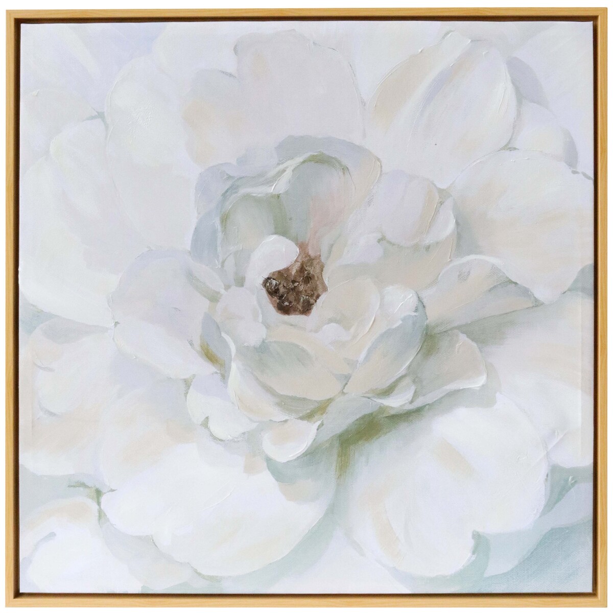 Our Framed Canvas Neutral Peony is just one of those pieces that seem to work everywhere, whether it's hanging up in a living room, a bedroom or even a hallway. With its delicate white and neutral hues set against textured canvas and resin, this artwork brings a sense of calm and subtle sophistication to any interior. The sturdy pine frame gives it a finished look - and at 80x80cm, it's the perfect centrepiece for customers who want to make a statement without being too bold.