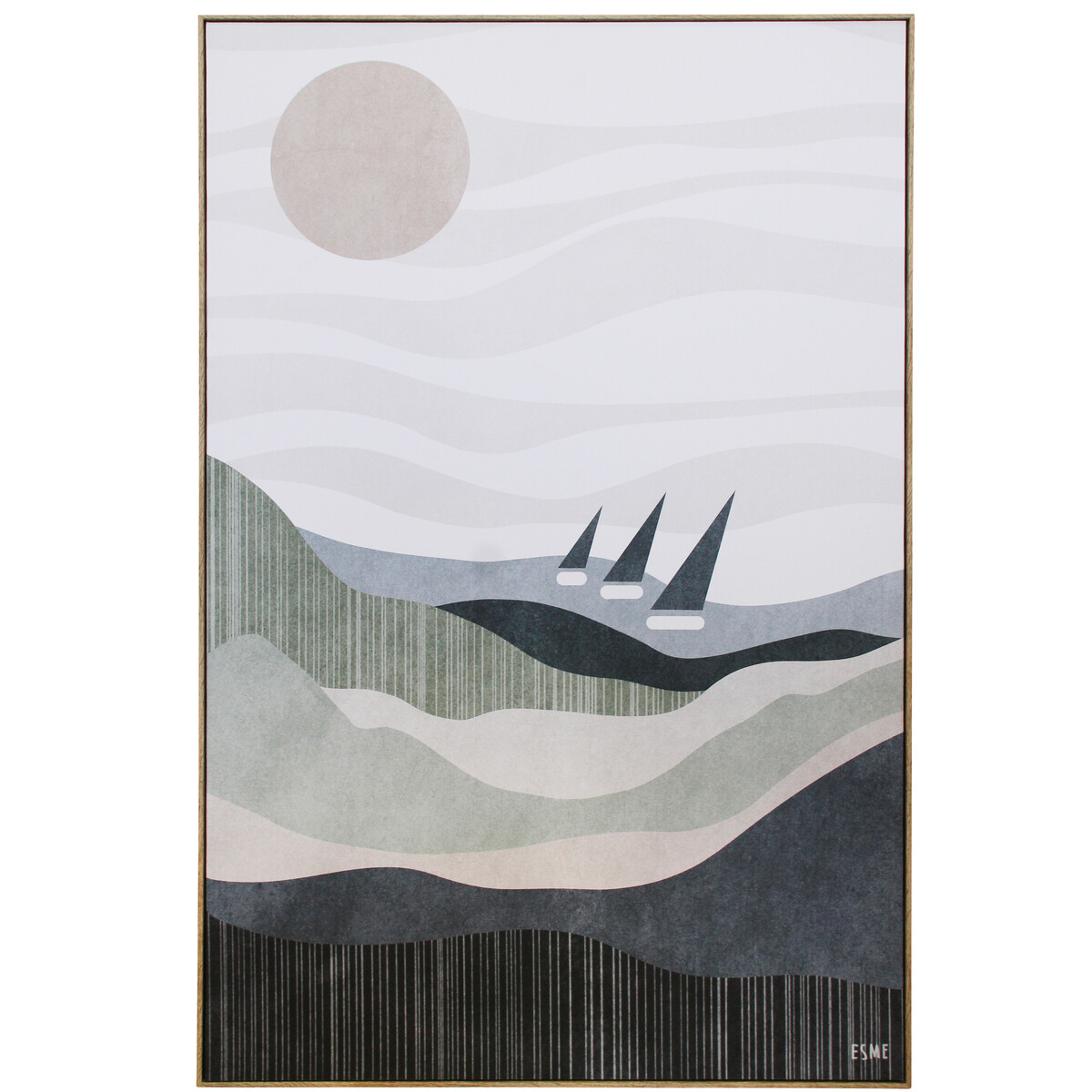 This one’s been printed onto a 60x90cm resin canvas for a crisp look and then finished with a pine frame for extra warmth. We’ve found this style suits all sorts of interiors - coastal, Hamptons, relaxed Australiana, modern, or even your regular transitional home that just needs some personality. Whether hung up in a kitchen nook, gallery wall, home office or living room - our Framed Canvas Trio Sail will add that eye-catching visual interest we all need to get through our days.