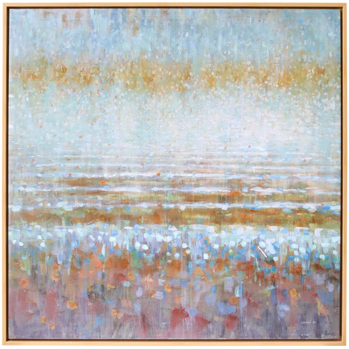 You know when you discover a piece that just feels alive with movement and mood? That's exactly what we're seeing in our Framed Canvas Rain Mustard. It’s as if someone’s pressed pause on the most beautiful rainy afternoon, and this is what’s left – all soft edges and that gentle mustard haze fading into cool mist. This one’s big at 100x100cm but still subtle, with its hand-finished paint effect. Each one does come out a bit unique. Some have more of those moody mustard accents, while others pick up more blues or a touch of something lighter. It all just works together.