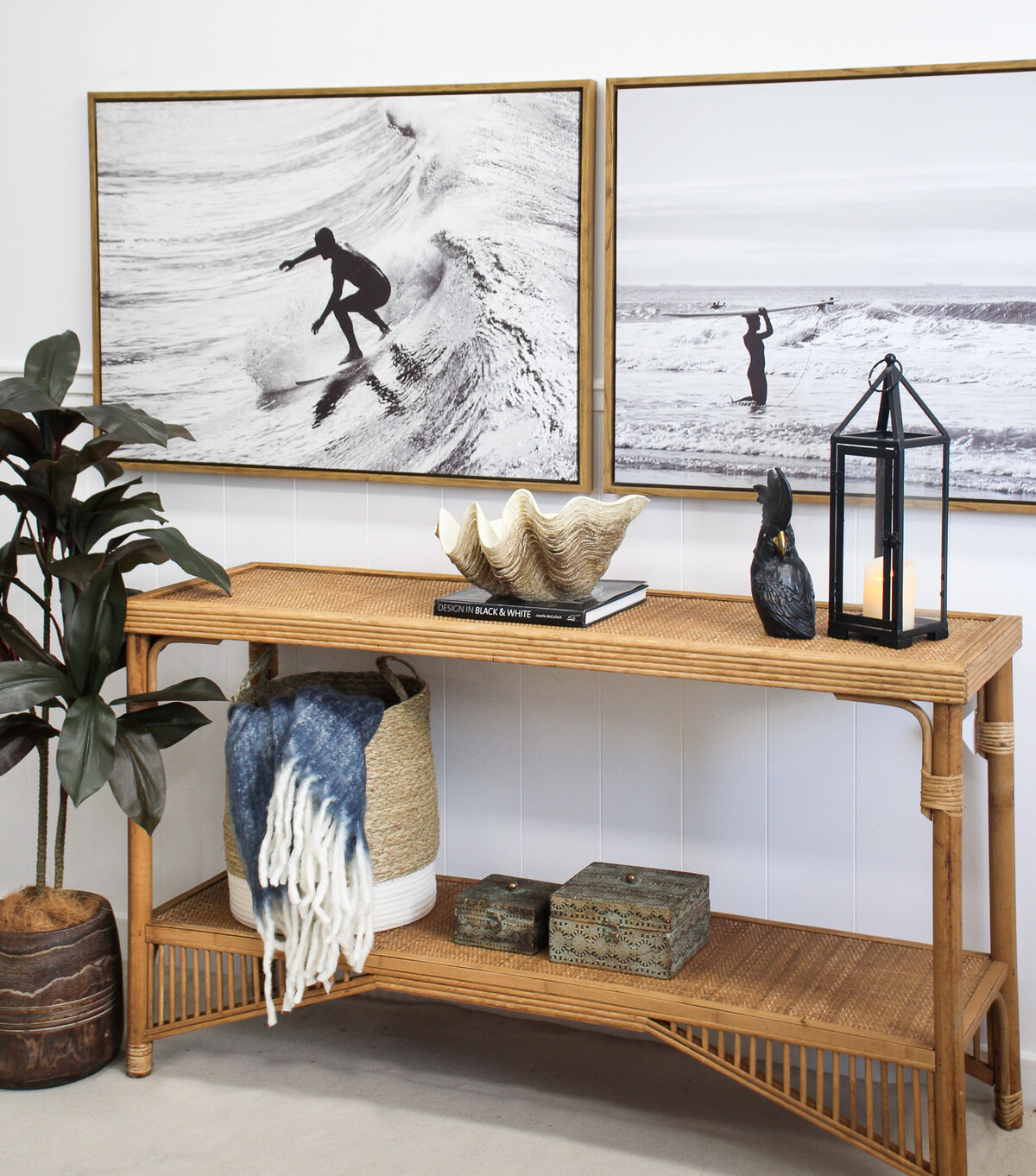 Our Framed Canvas Surfers 7 artwork is one of those pieces that just - works. It’s two classic, surf-inspired black and white prints you can position side by side for an instant visual impact. They do come as a pair - both sized at 70x100cm - and each is made from high-quality canvas mounted on pine with a resin finish for some extra texture. We’ve found that these work best as statement pieces in coastal homes, beach houses, or even in city flats for anyone wanting to bring some of the sea home. The monochromatic palette is surprisingly versatile - it won’t compete with anything else nearby. You could style these with breezy linen sofas and rattan accessories, but we’ve also seen them used as more masculine decor pieces paired with darker woods and leather. If your customers are the outdoorsy type or simply like a touch of something more classic but still coastal, Framed Canvas Surfers 7 might just be it.