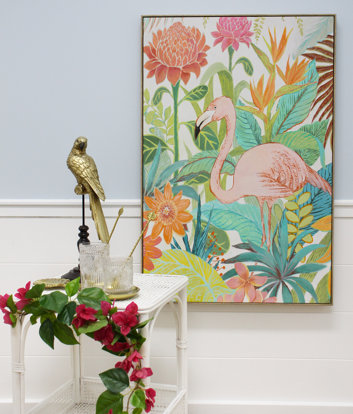 There’s something about Framed Canvas Tropic Life that just puts everyone in a better mood. It’s a cheerful 60x90cm canvas with soft watercolour leaves and flowers, a touch of the tropics - but still bright and light enough to suit so many spaces. We think it’s fantastic for retailers looking for art that adds colour without overwhelming a room. And not too pink, either! With its resin frame and pine details, it has this relaxed and earthy vibe that works so nicely with natural furniture - or even in those more contemporary interiors for a splash of fun. Our favourite part? The flamingo actually looks delicate and peaceful, not cartoonish or brash - more modern than kitsch. We see this piece working in lounges, workspaces, bedrooms…wherever your customers want to inject some positivity into their home without it being overpowering. Wouldn’t be surprised to see it in waiting rooms, too!