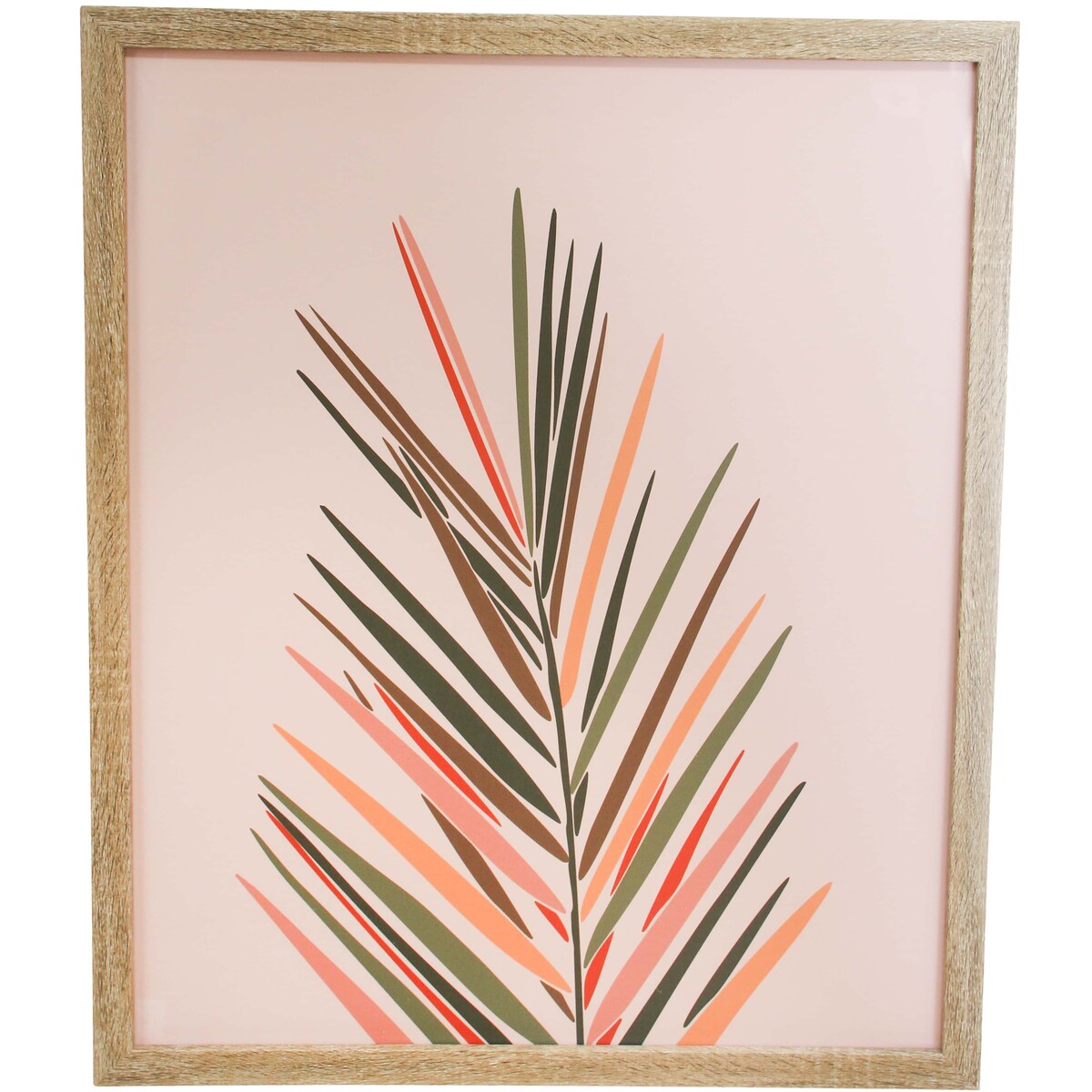 The Framed Print Fern Leaf, measuring 45x55cm, is one of those beautiful pieces that, in our view, can add a fresh touch to virtually any space. We appreciate the way its earthy hues - olive and coral-pink layered on a blush base - are subtle enough to work with a range of home décor palettes, but there’s still a sense of energy that isn’t lost. Something about it really does pop. We’ve found that minimalist prints like this tend to do quite well with contemporary buyers looking to create an easy focal point for their living room. And the design is universal enough that it can be paired with different wall arrangements too.