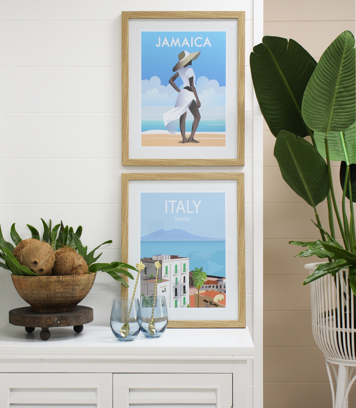 We’ve noticed that travel-inspired homewares are consistently popular with many consumers. They seem to strike that balance between nostalgia, aspiration, and the joy of having artwork that evokes happy memories or positive daydreams. This Framed Print Italy is a subtle yet striking piece - it features a simple, colourful scene depicting Napoli’s seaside. The print is set within a smooth and classic natural timber frame, and has a crisp white border to ensure the artwork stands out in any space.