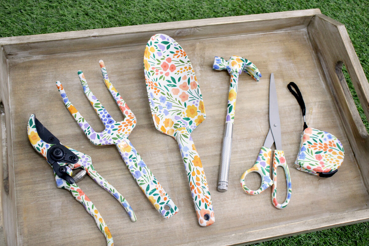 Each set contains a 27cm shovel, 23cm rake and 20.5cm secateurs - all made from a combination of aluminium and steel for sturdiness in the hand. The size makes it perfect for smaller home gardens (and even patio pots or balconies), but not too dinky either. We’d absolutely stock this alongside other nature-inspired gifts or items with hand-painted flower designs.